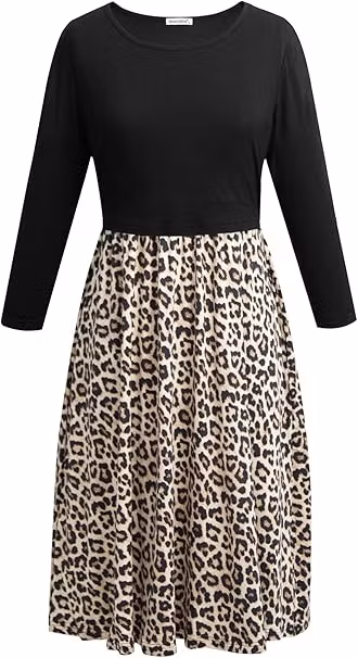 Denna långärmade amningsklänning i en trendig kombination av svart och leopardmönster kombinerar stil och funktion för den moderna mamman. Tillverkad av ett mjukt och stretchigt material som är skonsamt mot huden och inte genomskinligt, ger den en bekväm passform perfekt för daglig användning.