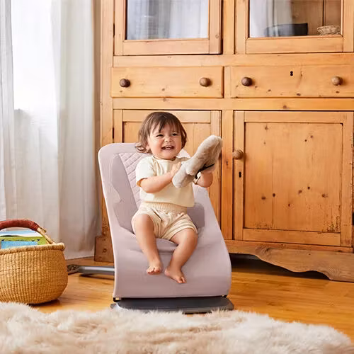 Den naturliga gungningen och tidlösa designen gör Evolve 3-in-1 Babysitter perfekt för mysiga stunder, oavsett om det handlar om vila, lek eller matning. Babysittern är noggrant utformad för att säkerställa rätt stöd och komfort, vilket främjar ditt barns utveckling på ett naturligt sätt.