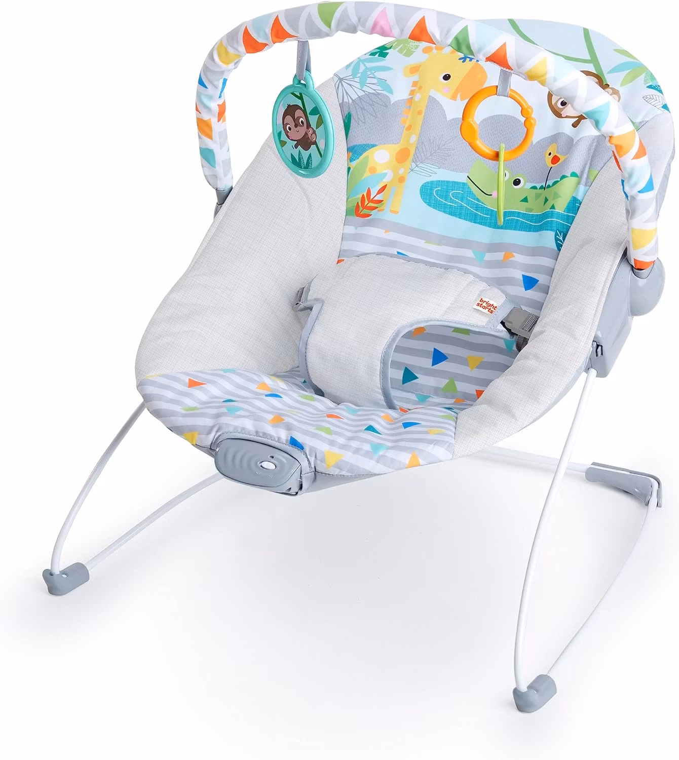 Med Bright Starts babygunga får ditt barn en trygg och rofylld plats att koppla av på. Den mjuka sitsen med hög rygg ger stöd åt små kroppar, medan 3-punktsbältet håller barnet säkert under hela gungningen.