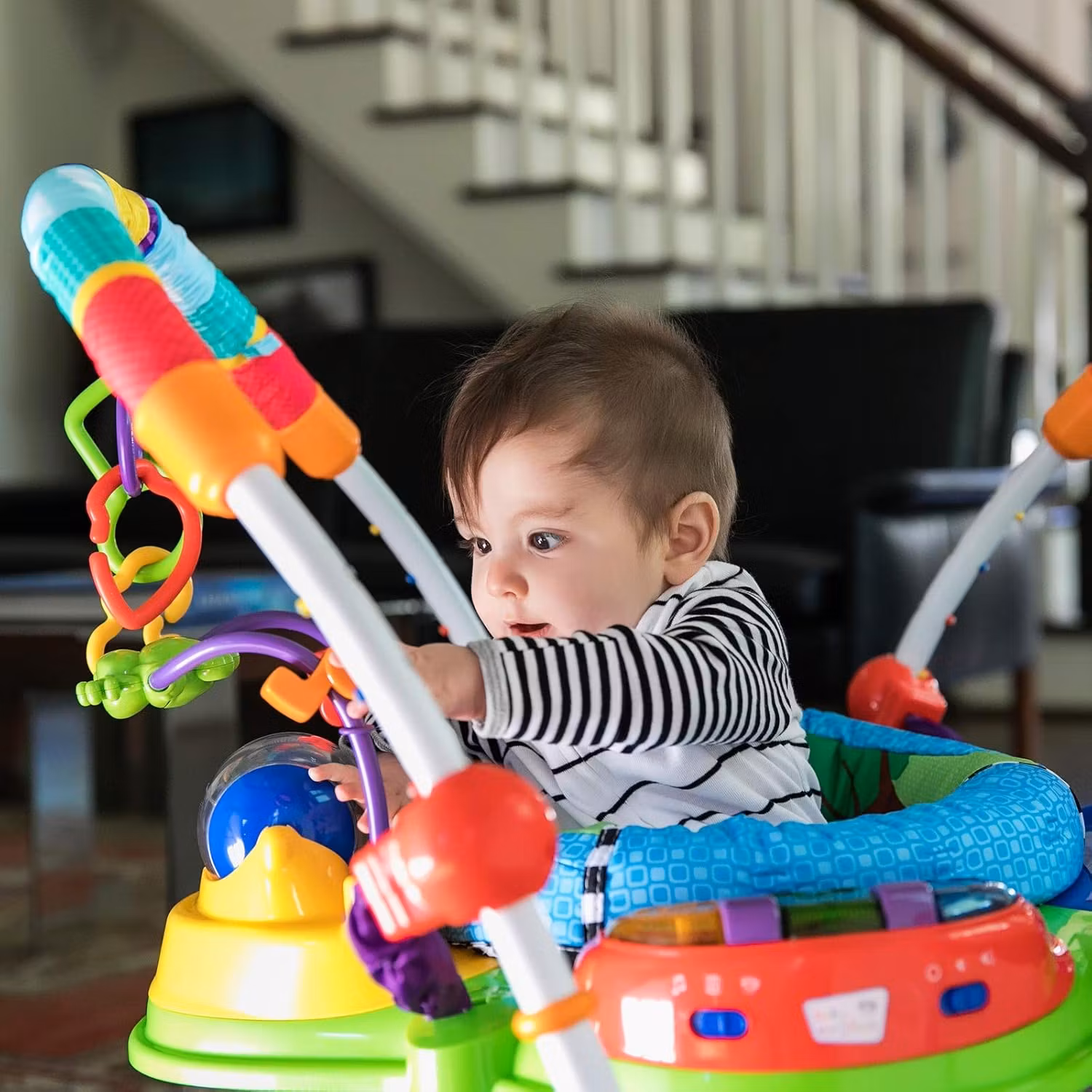 Baby Einstein hoppgunga Neighborhood Friends bjuder in till lek, rörelse och upptäckarglädje i en trygg miljö. Med tre aktivitetsstationer och över 12 olika lekmöjligheter stimuleras barnets sinnen och motorik på ett naturligt sätt. Den 360° roterande sitsen gör det enkelt att nå alla leksaker, samtidigt som fem justerbara höjdnivåer låter gungan växa i takt med barnet. Här finns färgglada figurer, ljud och strukturer som väcker nyfikenhet och uppmuntrar till utforskning. Extra öljetter gör det möjligt att fästa barnets favoritleksaker. Det inbyggda spelbordet är lätt att rengöra, vilket gör vardagen smidigare för föräldrar. En hoppgunga som förenar lek, trygghet och lärande – perfekt för små upptäckare.