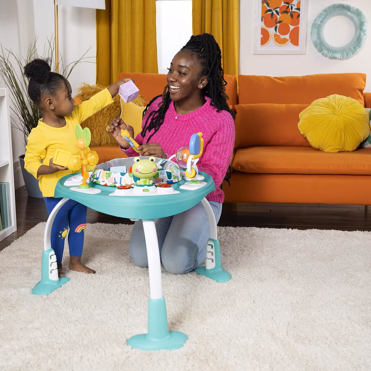 Bright Starts hoppgunga 2-i-1 är en smart och mångsidig aktivitetsleksak som växer med barnet. Den kan användas både som hoppgunga och som lekbord, vilket gör den till ett praktiskt val som ger lång användningstid.