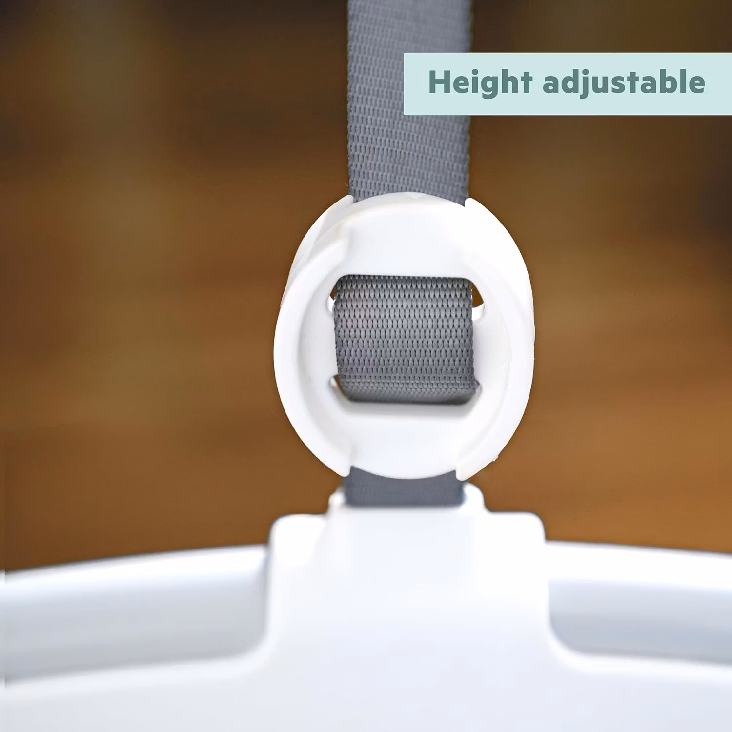 Det mjuka sätet är bekvämt och ger bra stöd för barnets kropp, samtidigt som hoppandet stärker bålmusklerna och motoriken. Rekommenderas från cirka 6 månaders ålder och upp till 11,7 kg.