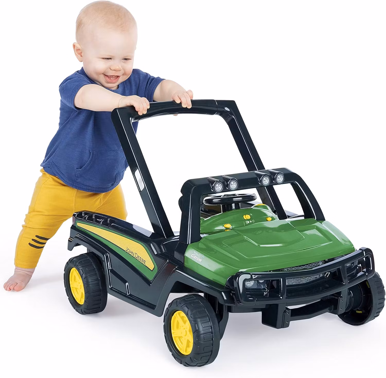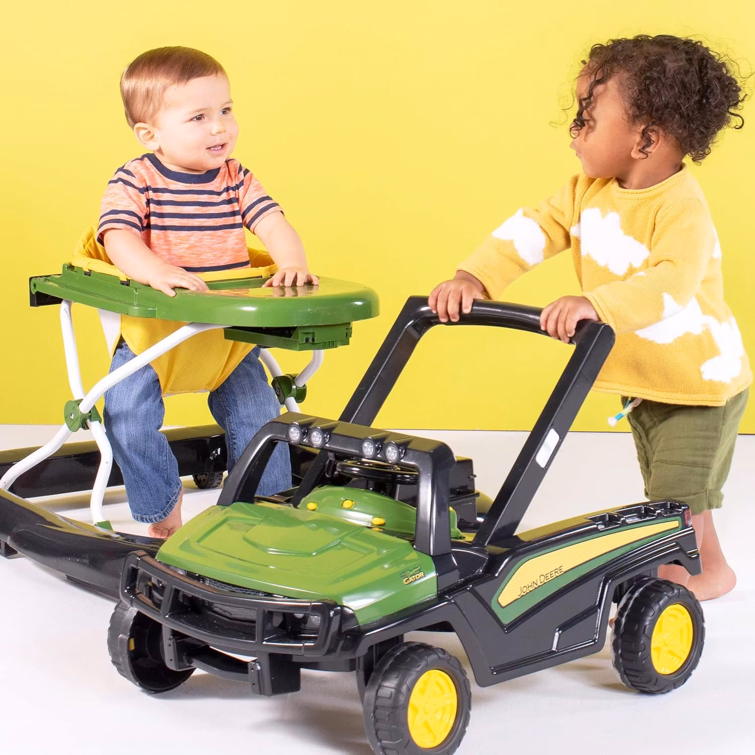 Bright Starts gåstol John Deere Gator Mini är skapad för små äventyrare som vill upptäcka världen på hjul. Med autentiska traktorlampor, ljud och en avtagbar rattpanel blir leken både rolig och realistisk. Fyra spellägen låter stolen växa med barnet, och den kan användas både som traditionell gåstol och som skjutleksak.