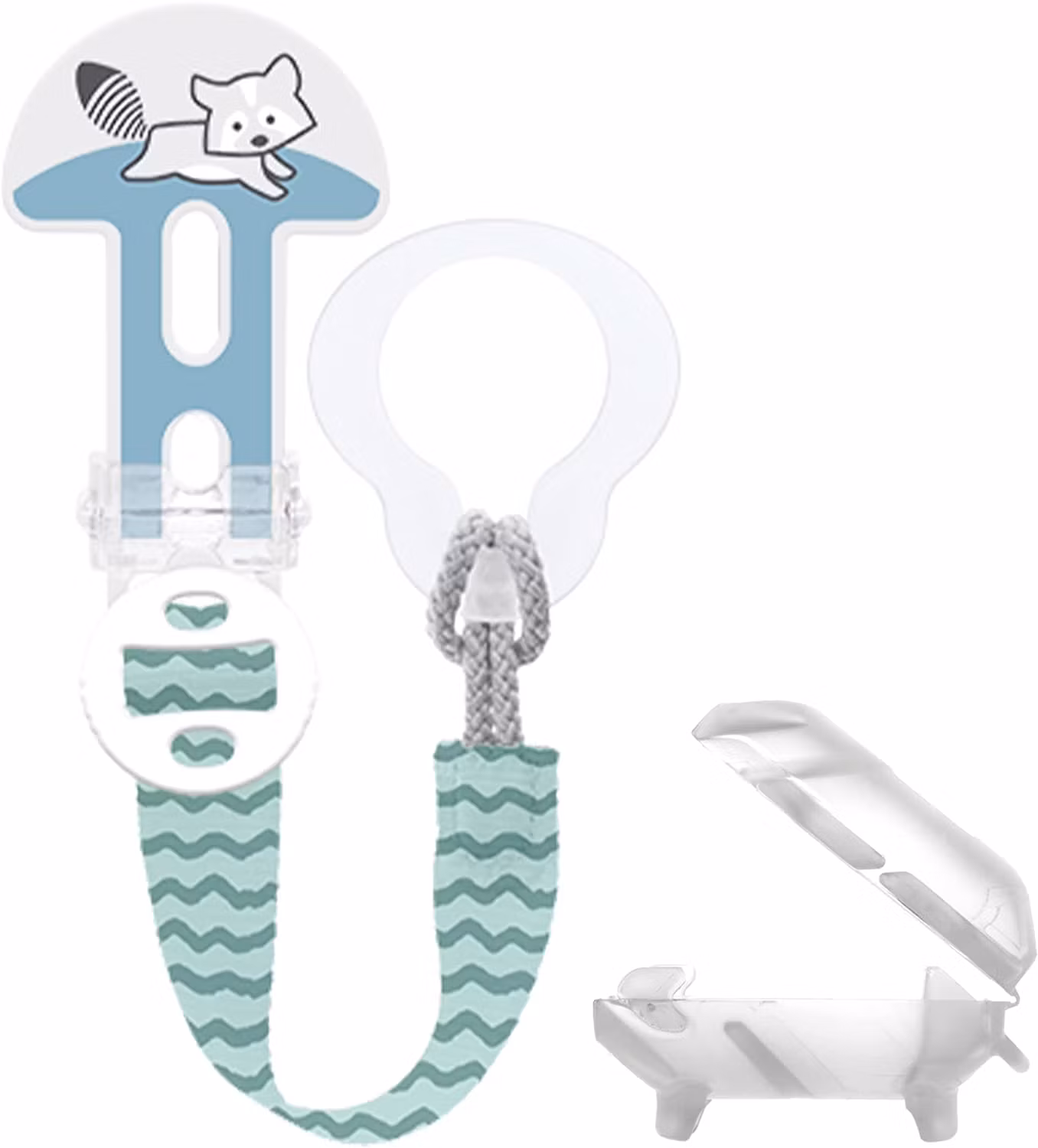 Denna napphållare är kompatibel med alla typer av nappar och bitringar, vilket gör den till ett mångsidigt och praktiskt tillbehör. Bandet har en säkerhetsanpassad längd för trygg användning, samtidigt som den flexibla designen gör den enkel att använda i vardagen.