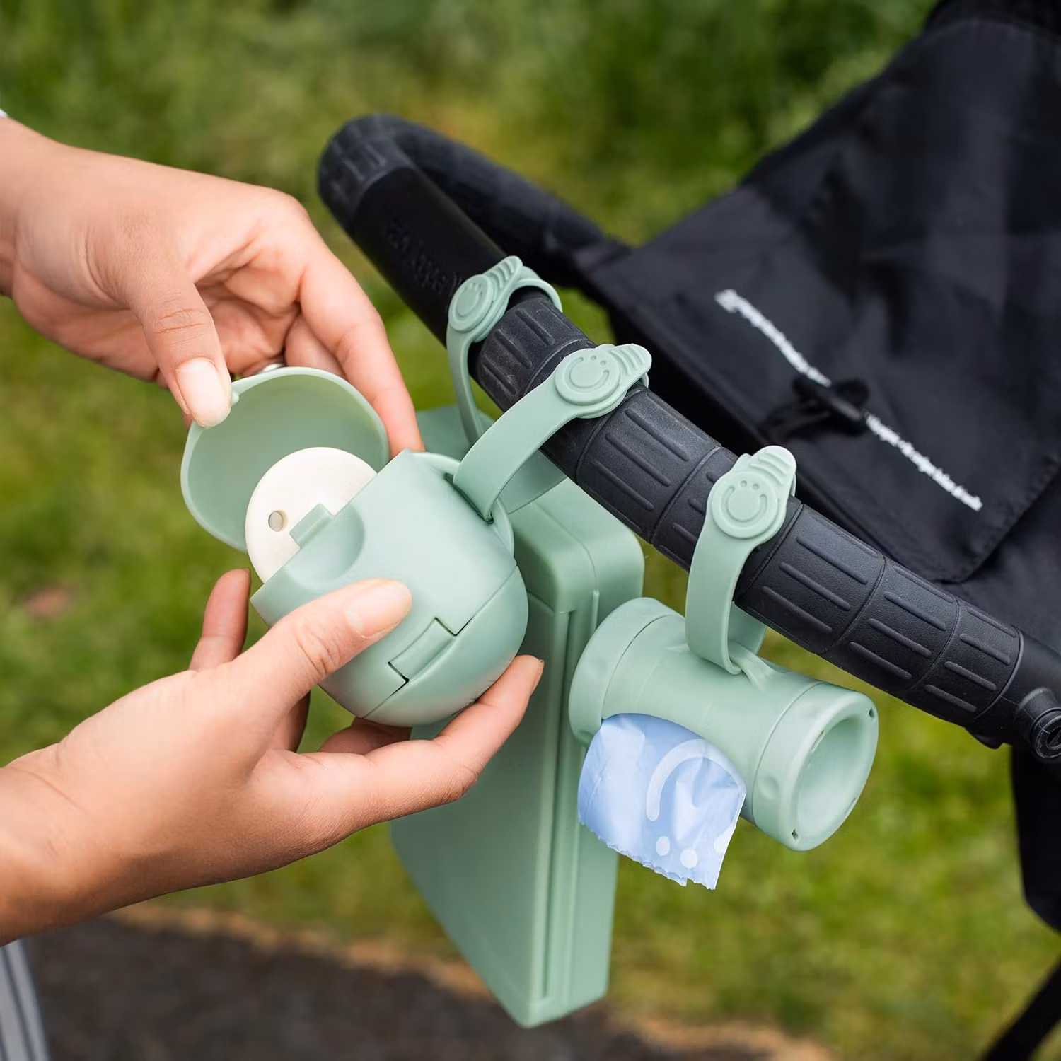 Den kompakta designen gör Ubbi On-the-Go dubbel napphållaren enkel att ta med på resor, vilket gör den till en oumbärlig accessoar för föräldrar på språng. Snäpp stängningen gör det enkelt att öppna och stänga napphållaren med en hand, vilket är en stor fördel när du har händerna fulla.