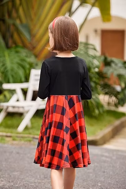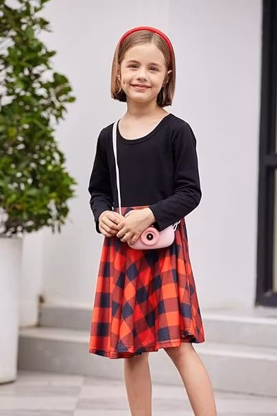 Denna flickklänning med långa ärmar och A-linje silhuett är perfekt för hösten. Den har en rund hals och en asymmetrisk fåll som ger klänningen en modern och lekfull touch. Klänningens enfärgade design gör den lätt att kombinera med olika plagg. Klänningen är gjord av bomull och elastiskt tyg, vilket gör den mjuk och bekväm att bära.