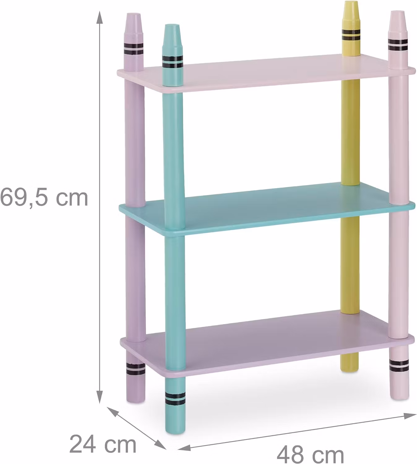 Relaxdays barnhylla erbjuder en praktisk och estetisk förvaringslösning för barnrummet. Med tre öppna hyllor finns det gott om utrymme för leksaker, böcker och gosedjur. Dess färgglada design i pastellfärger och vaxmålning ger en lekfull touch till rummet.