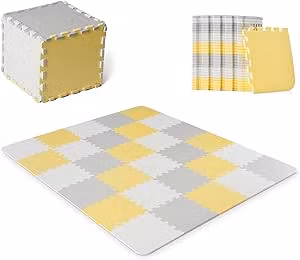 Setet innehåller 30 pusselbitar i mjukt skum som enkelt kan kombineras för att skapa olika lekytor upp till 150 x 180 cm. Mattan är tillverkad av giftfria, stötdämpande material, vilket gör den skonsam för små barn från 10 månader och uppåt. Dess vattenavvisande yta gör den dessutom enkel att rengöra.