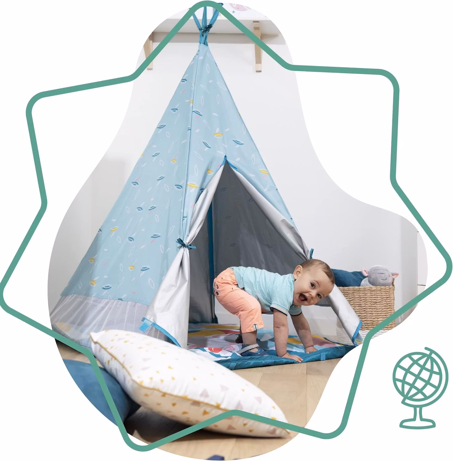 - Badabulle tipi kan förvaras i den medföljande bärväskan.