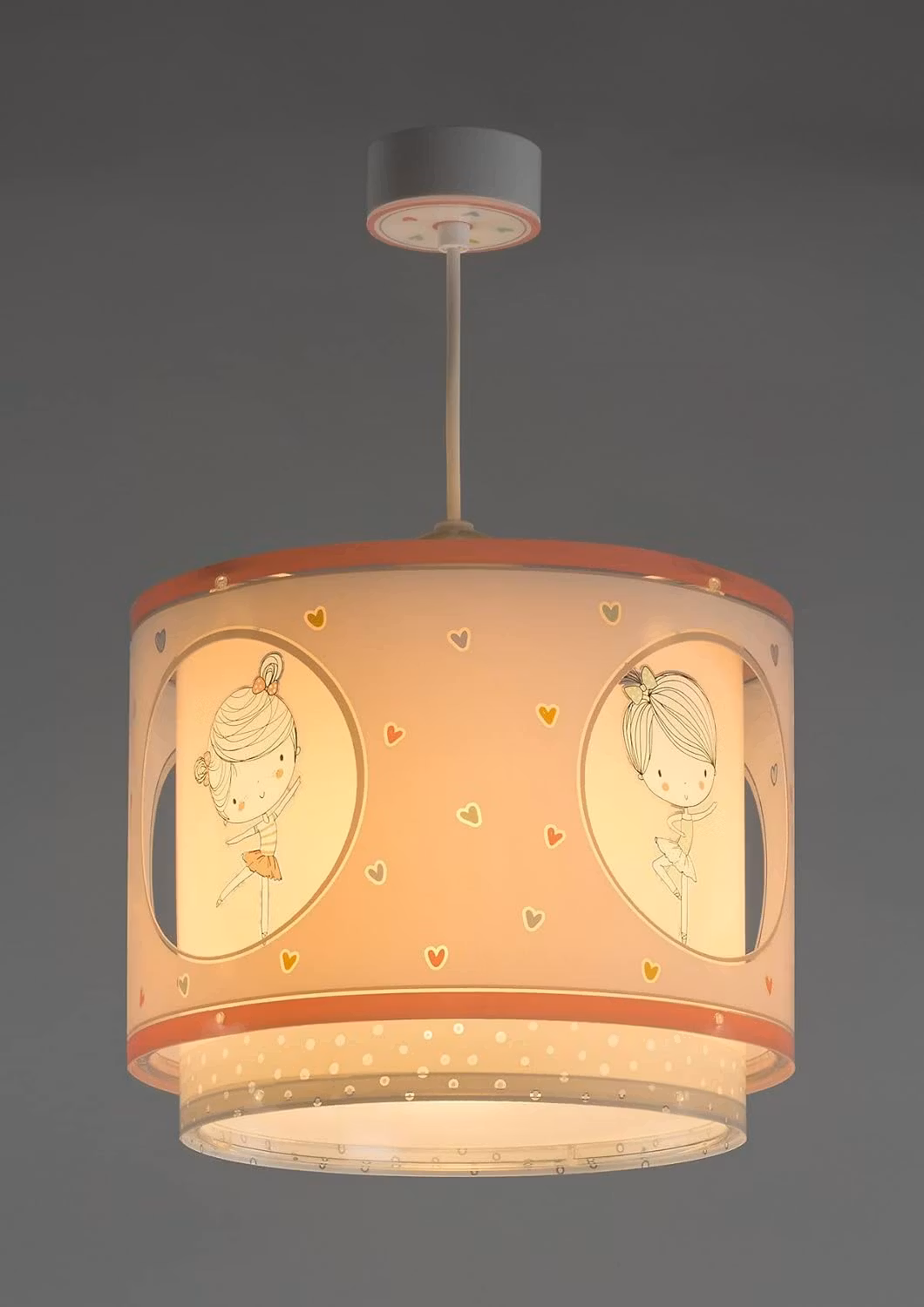 Dalber taklampa Ballerina är en elegant och lekfull taklampa som skapar en drömlik atmosfär i barnrummet. Med sitt charmiga motiv av ballerinafigurer och mjuka pastellfärger ger den en sagolik känsla, perfekt för små dansälskare.