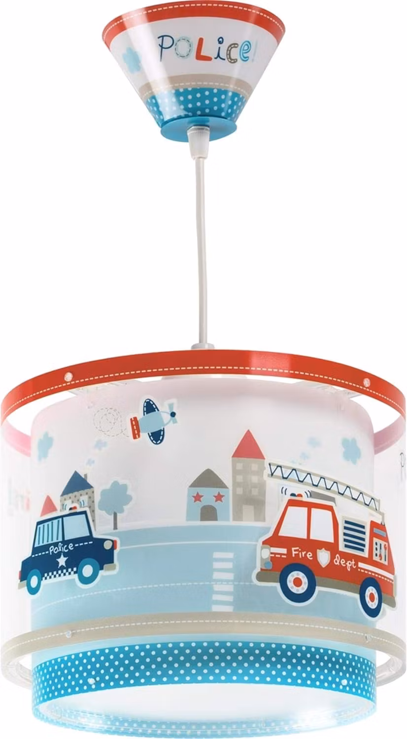 Dalber taklampa Räddningstjänst är en spännande och färgglad taklampa som passar perfekt i barnrummet. Med sitt livliga motiv av brandbilar, ambulanser och polisbilar skapar den en lekfull atmosfär som inspirerar till äventyr och fantasifulla lekar.