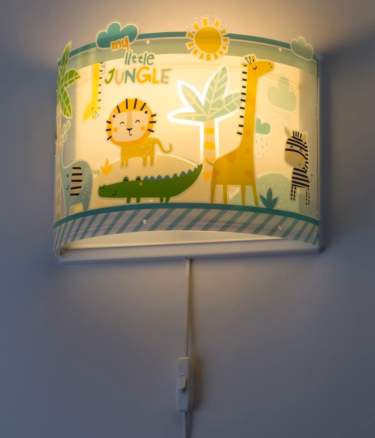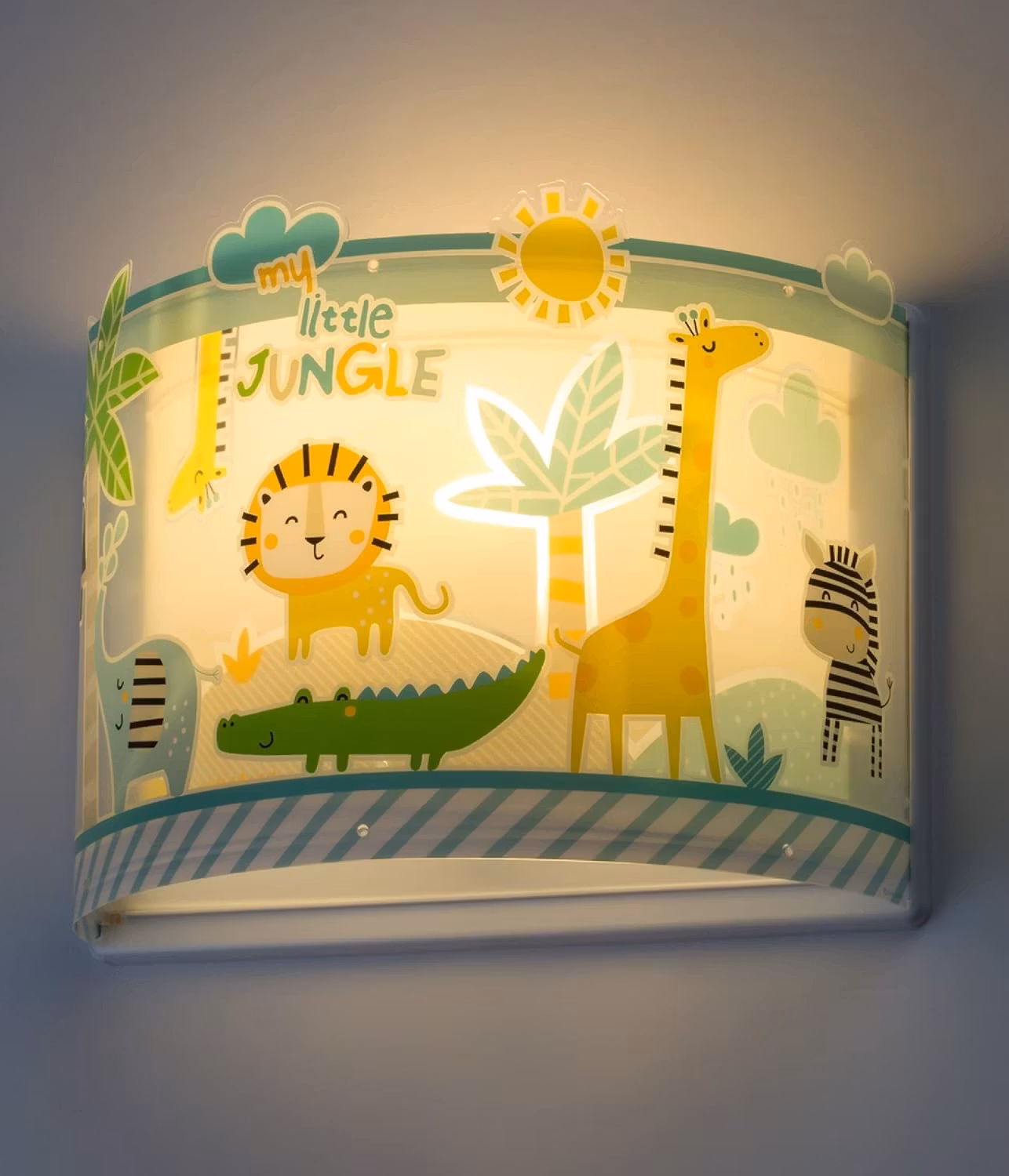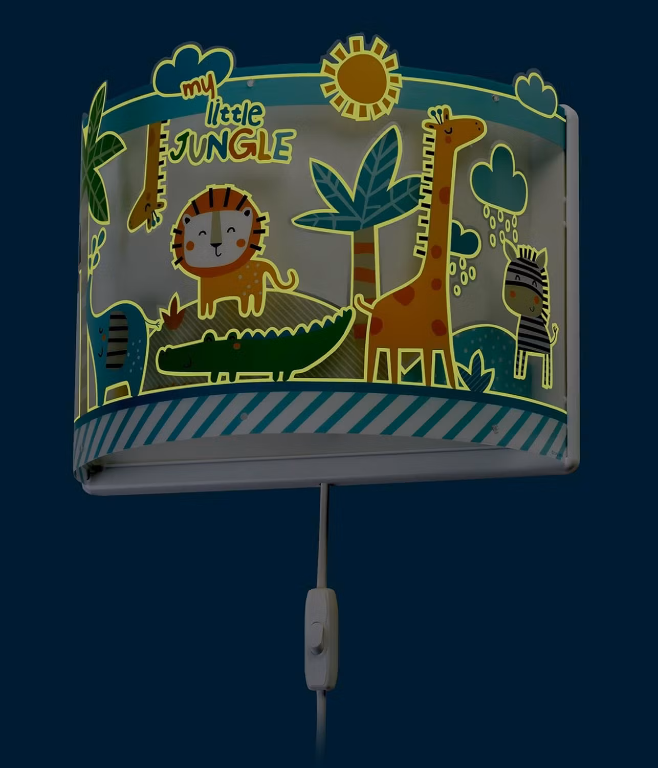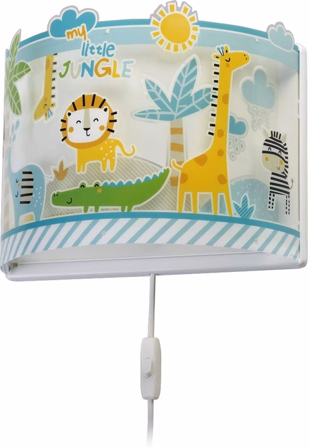 Dalber vägglampa My Little Jungle är en färgglad och lekfull lampa som skapar en mysig och inbjudande atmosfär i barnrummet. Med sina charmiga djungeldjur som lejon, elefanter och apor blir den en perfekt detalj för små djurälskare och äventyrare.