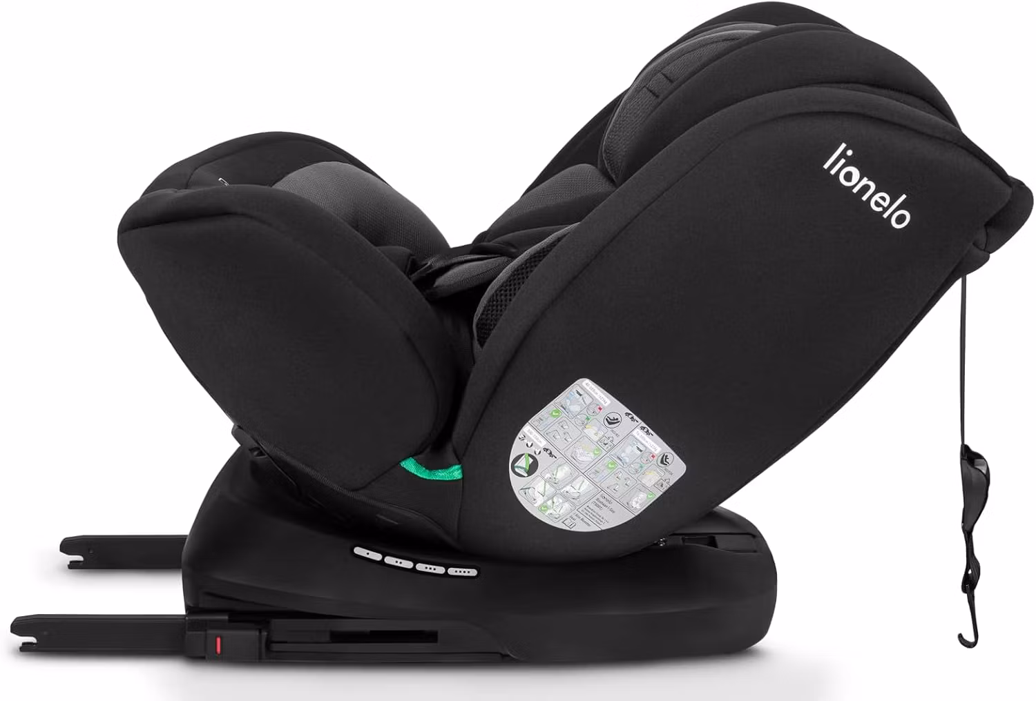 Lionelo Bastiaan i-Size Bilbarnstol erbjuder maximal säkerhet och komfort för ditt barn. Stolen kan enkelt roteras runt sin axel, vilket gör det bekvämt att sätta fast och ta ut barnet utan att anstränga ryggen. TopTether-bältet är praktiskt fäst på anti-rotationsramen, vilket möjliggör fri rotation av sätet. ISOFIX-systemet och TopTether-bältet säkerställer problemfri installation, stabilitet och säkerhet vid plötslig bromsning.