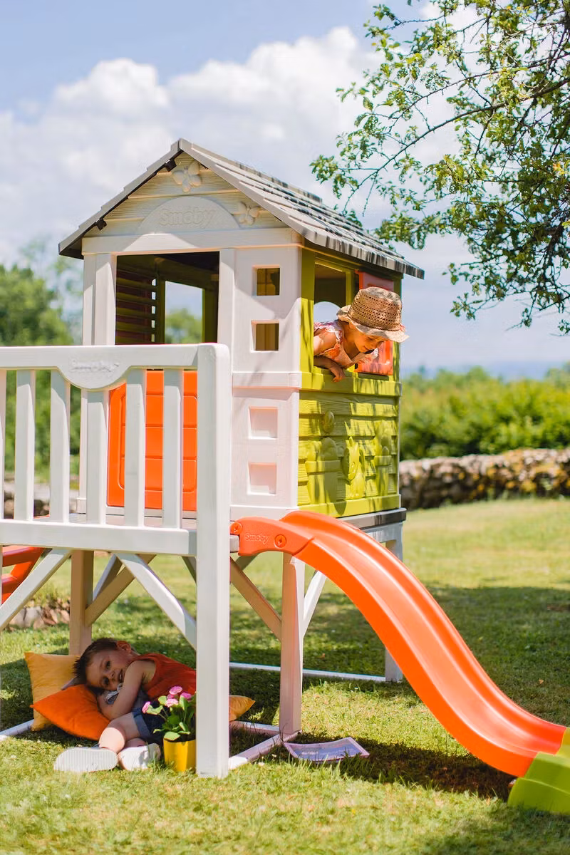 Smoby Lekstuga Med Rutschkana är den ultimata lekplatsen för barn, designad i livliga färger och prydd med bedårande djurmotiv för att inspirera till timmar av fantasifull lek. Med realistiska detaljer på taket och väggarna, flera fönster och dörrar, erbjuder denna lekstuga en rik och inbjudande miljö. Dess robusta konstruktion är skyddad med anti-UV-behandling för att färgerna ska hålla sig klara och vackra över tid, och den är dessutom enkel att montera, vilket gör den till en praktisk och varaktig lekplats för varje trädgård.