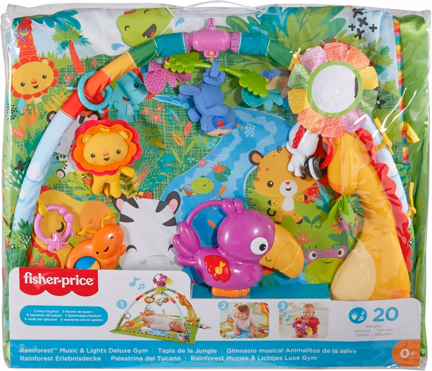 Ett babygym som kombinerar trygghet, stimulans och glädje – och gör varje lekstund till ett litet äventyr i regnskogens magiska värld.
