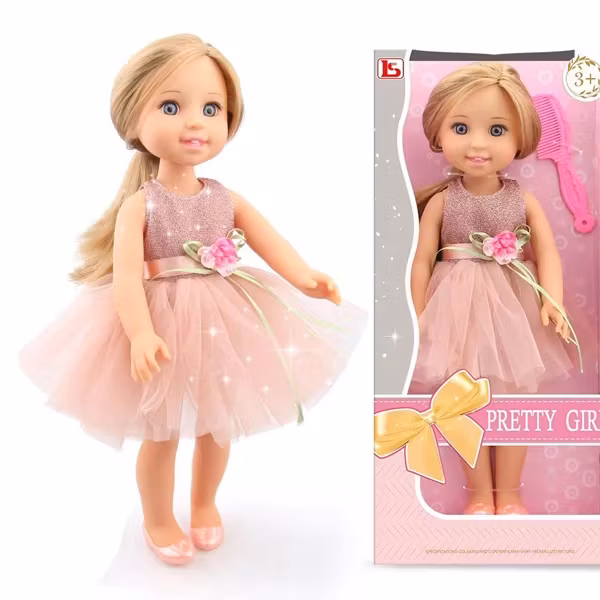 Denna vackra docka är en drömsk följeslagare för barn som älskar både äventyr och stillsamma stunder. Med sitt ljust bruna hår och sin eleganta klänning är hon redo för allt från sagolika tebjudningar till fantasifulla upptäcktsfärder i trädgården. Hennes naturliga utseende och charm gör att hon snabbt blir en självklar del av barnets docklek.