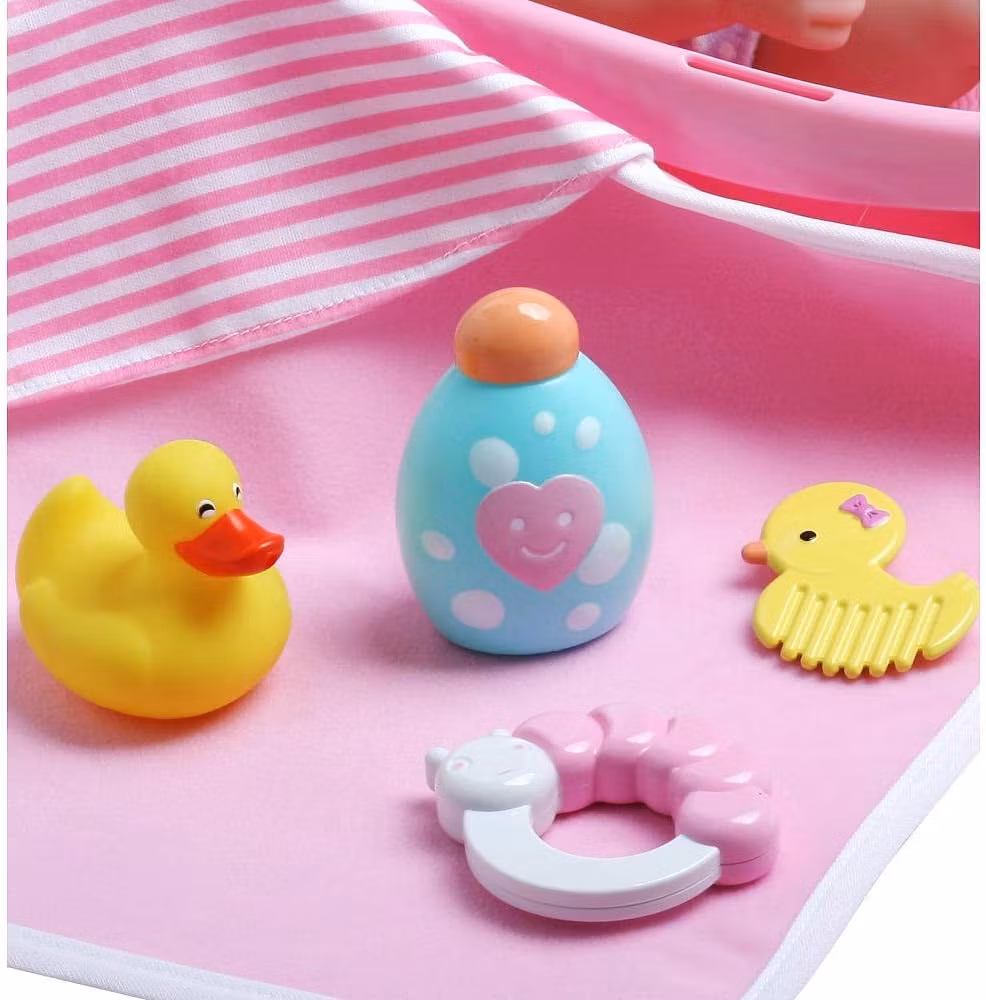 JC Toys Babydocka med Balja och Tillbehör är en bedårande docka på 36 cm tillverkad av mjukt och slitstarkt vinylmaterial. Denna realistiska babydocka kommer med en 8-delars tillbehörssats som inkluderar ett rosa balja, baddräkt, handduk, blöja, napp, nappflaska och schampoflaska – perfekt för badlekar och omhändertagande.