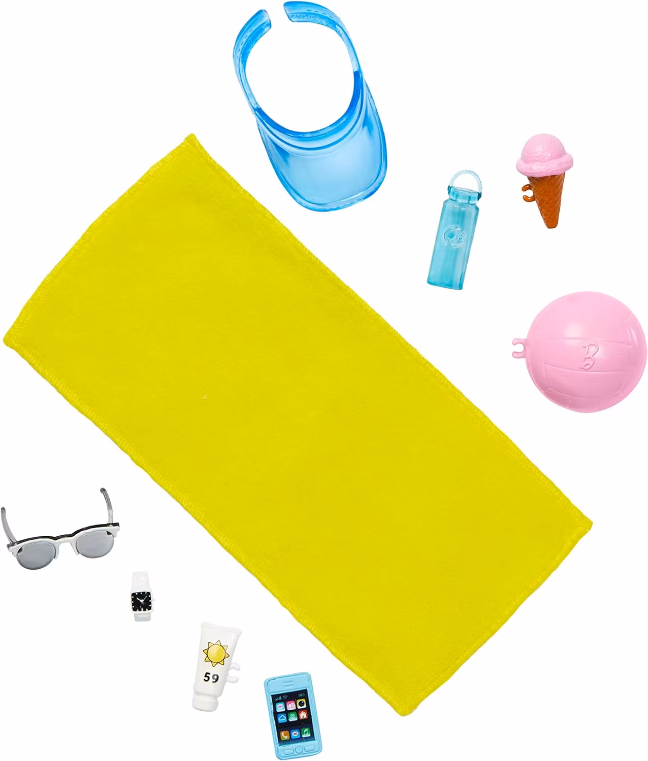 Ken är stilig i sin blå- och vitrutiga skjorta kompletterad med matchande himmelsblå badbyxor. Hans glänsande blå sandaler prydda med en Ken-logotyp lägger till den perfekta touchen för hans strandlook.