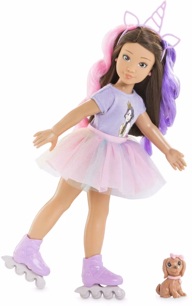 Corolle Luna Modedocka 28 cm Enhörningsset är en charmig docka som bjuder in till fantasifull docklek med en konstnärlig twist. Luna är en kreativ och uttrycksfull figur som älskar att måla, och hennes unika personlighet gör henne till en underbar lekkamrat. Med i setet följer hennes trofasta lilla hund och sex trendiga accessoarer som ger oändliga möjligheter till styling och lek.