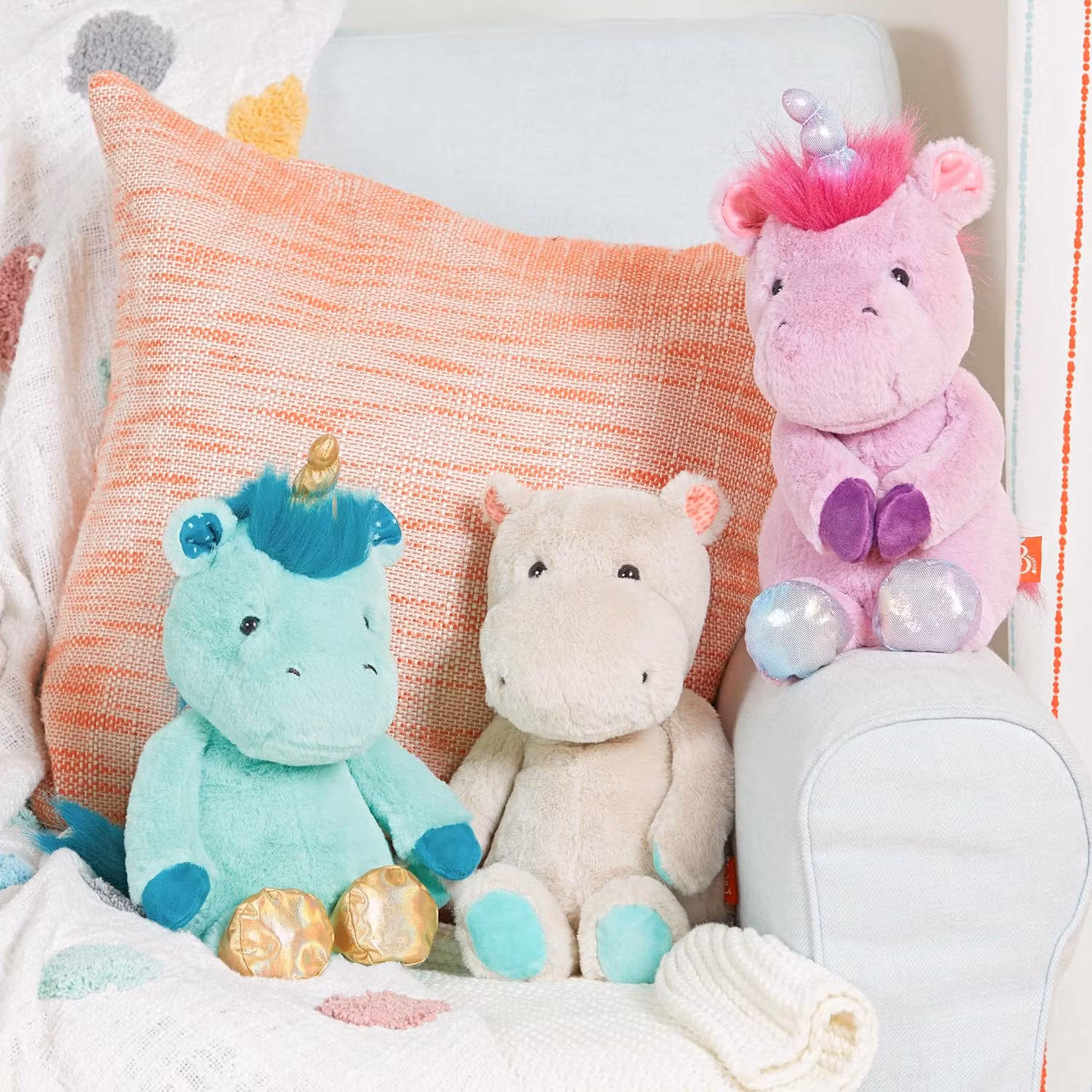 Battat Toys Flodhäst, även känd som Gerry Grey, är ett gosedjur som snabbt blir barnets trogna följeslagare – från lekfulla äventyr till lugna sovstunder. Med sin lena, grå päls, vänliga ögon och rundade former är han både en kramvänlig och charmig kompis att ha nära.