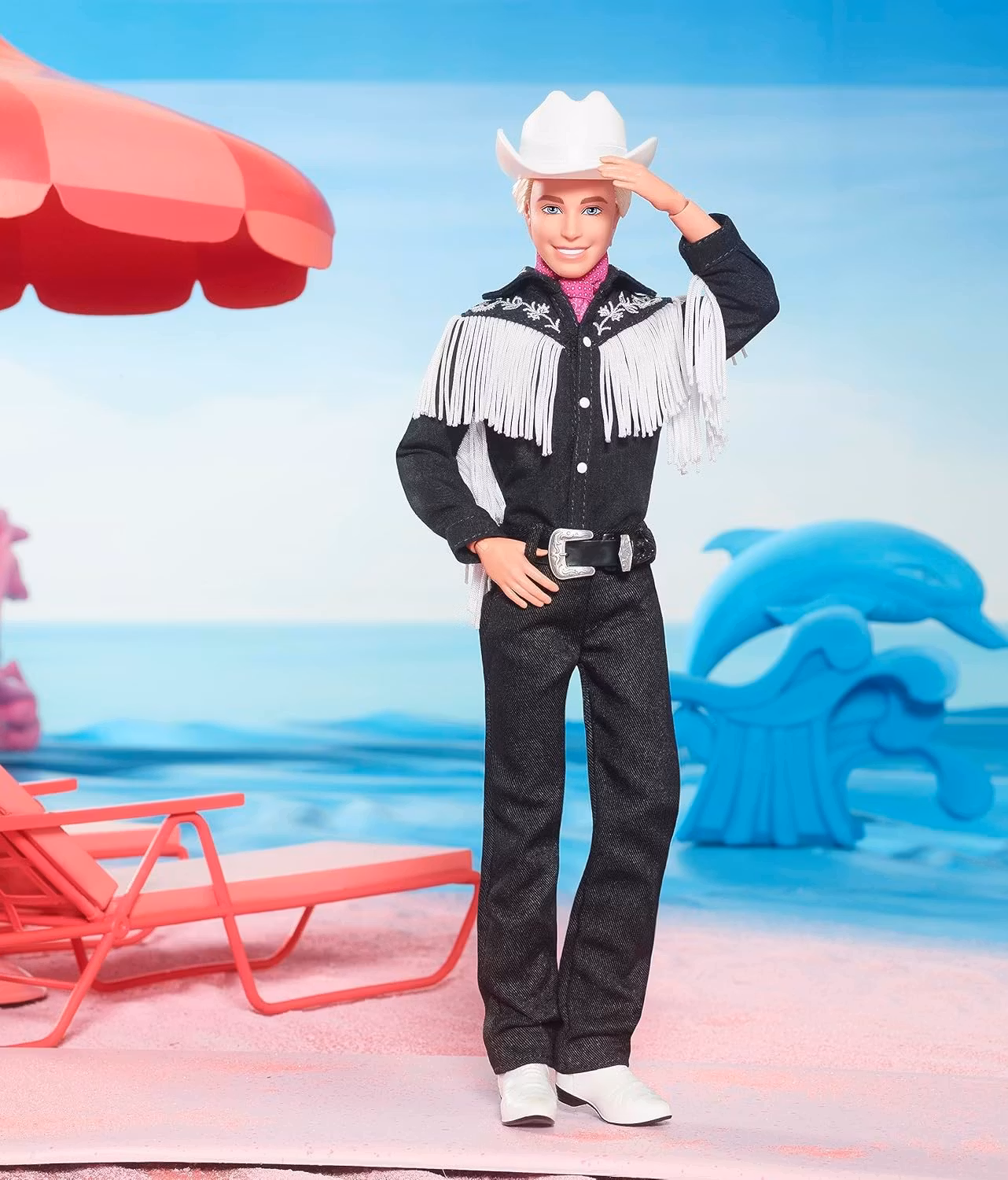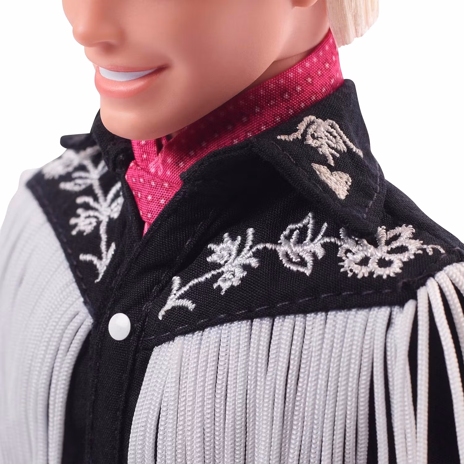 För en lekfull färgklick har Ken en knuten rosa bandana i halsen, ett subtilt men stilfullt inslag som knyter an till den klassiska Barbie-estetiken. En perfekt samlarobjekt för Barbie-fans och filmälskare!