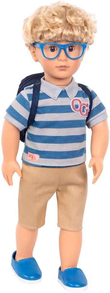 Our Generation Docka Leo är en charmig och mångsidig pojkdocka som passar perfekt för både lek och lärande. Med kort vågigt blont hår och mörkbruna ögon som kan öppnas och stängas, bjuder Leo in till engagerande docklek. Hans flexibla leder vid hals, armar och ben gör det enkelt att byta kläder och skapa olika scenarier i barnets fantasivärld.
