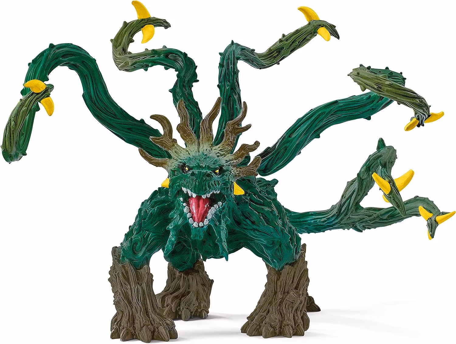 Den legendariska djungelvarelsen från Schleich® ELDRADOR® Creatures är en mäktig figur som dominerar djungeln med sin imponerande närvaro. Med förmågan att svinga sina långa grenar och en svans full av giftiga taggar, överraskar detta monster sina fiender i strid. Dess ben och de skräckinjagande hornen på skallen är gjorda av superhårt järnved, vilket gör det nästintill ogenomträngligt för angrepp. En sann kung av djungeln som vakar över sitt rike och endast visar sig när dess hem hotas.
