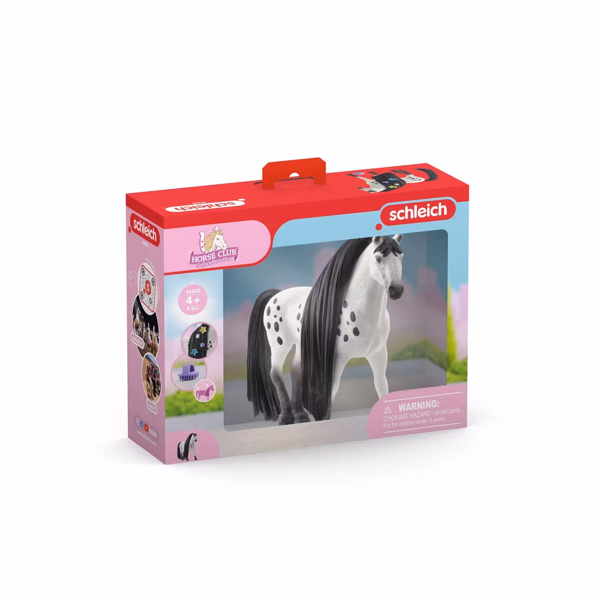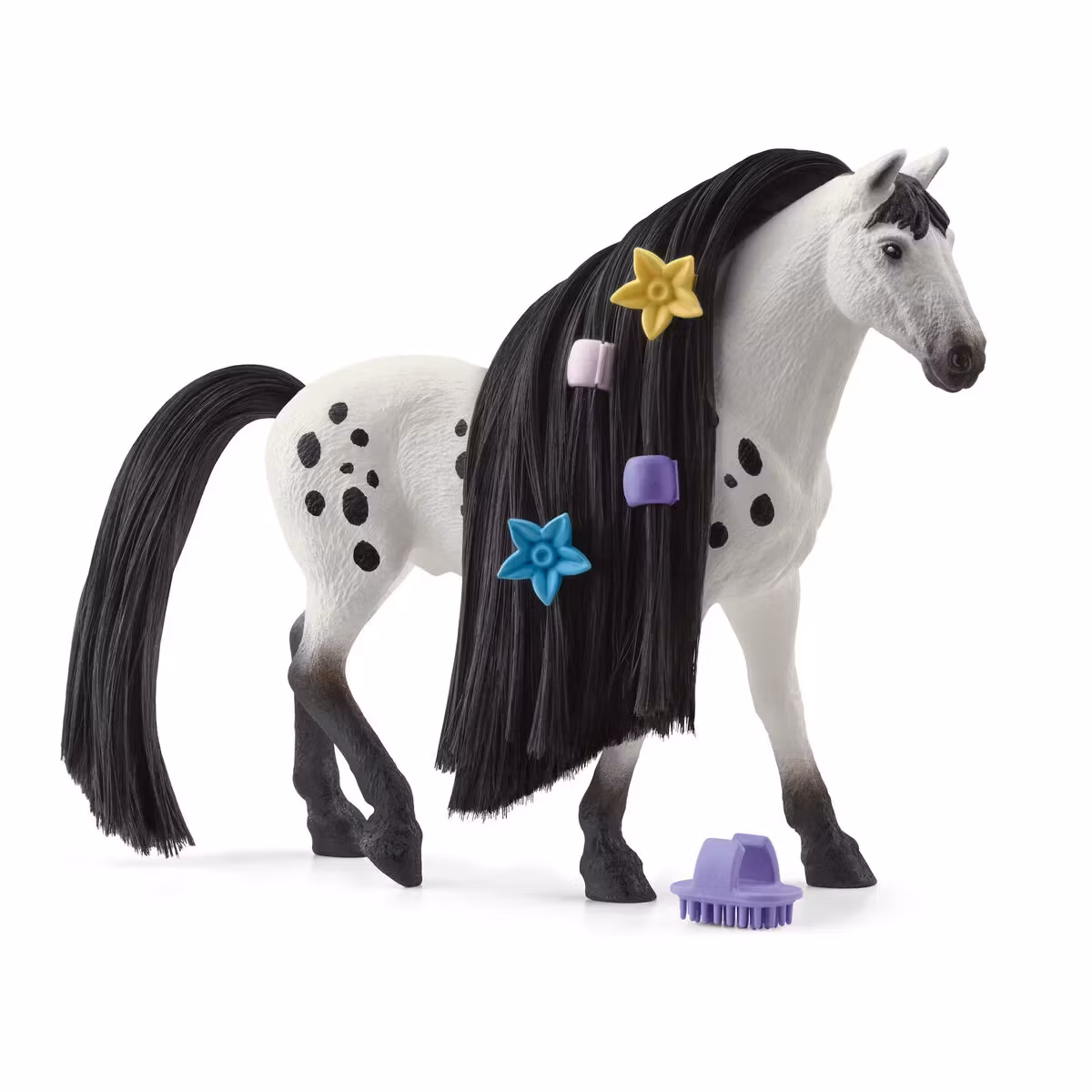 Figuren är noggrant utformad för att efterlikna hästens verkliga rörelser och utseende, vilket gör den perfekt för både lek och samling. Knabstrupper är kända för sin intelligens, styrka och vänliga temperament, vilket gör denna figur till ett fantastiskt tillskott i alla hästälskande barns leksakssamling.