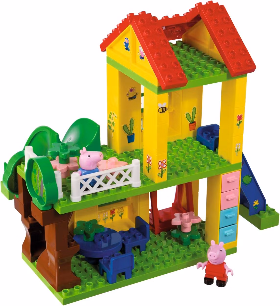 Setet inkluderar tre stora basplattor för att ge en stabil grund och göra byggandet enkelt och roligt. Perfekt för barn som älskar att skapa sina egna äventyr och leka med Greta Gris och hennes vänner.