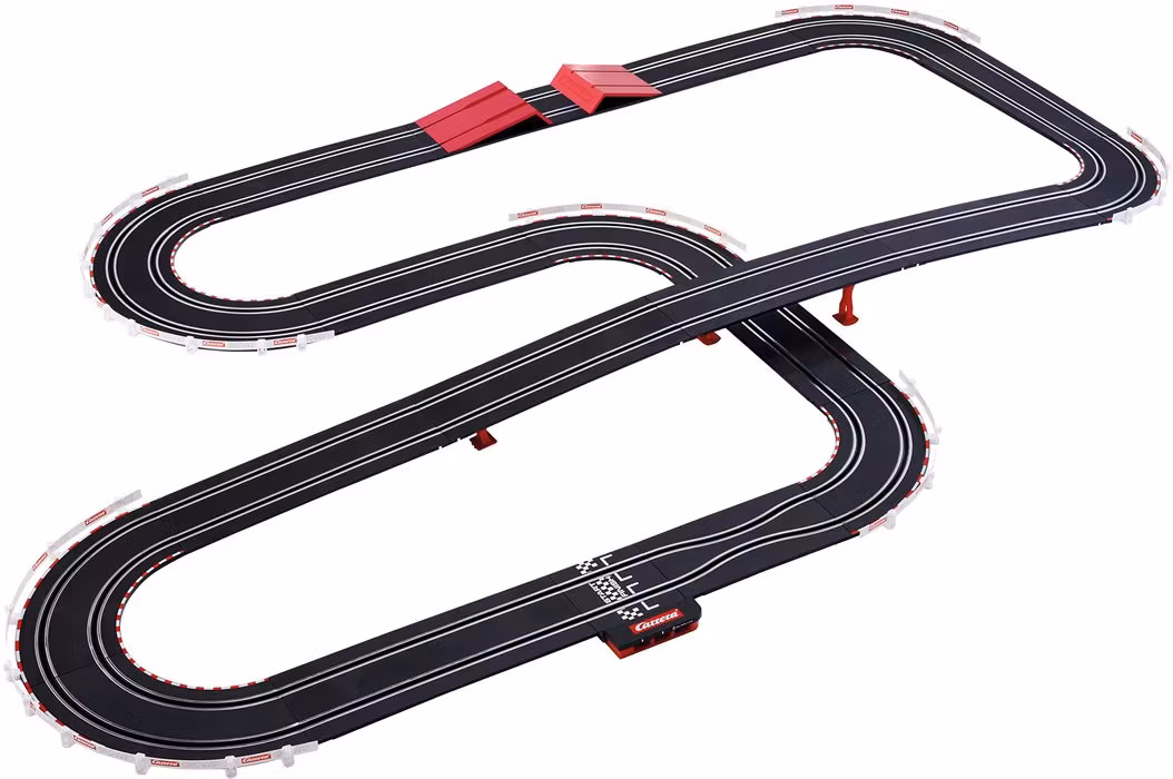 I setet ingår en blixtsnabb, blå racerbil och en kraftfull, röd monsterbil som är redo för duell på den 6,2 meter långa banan. Skapa spännande raksträckor, utmanande svängar och till och med en vågad hoppramp. Med turbo boost-funktioner på kontrollerna är spänningen garanterad. Carrera GO Build 'n Race är en dröm för alla racing entusiaster som älskar att skapa och tävla!