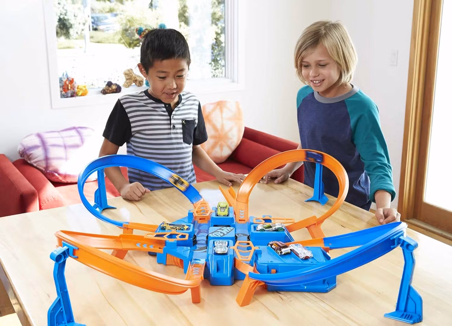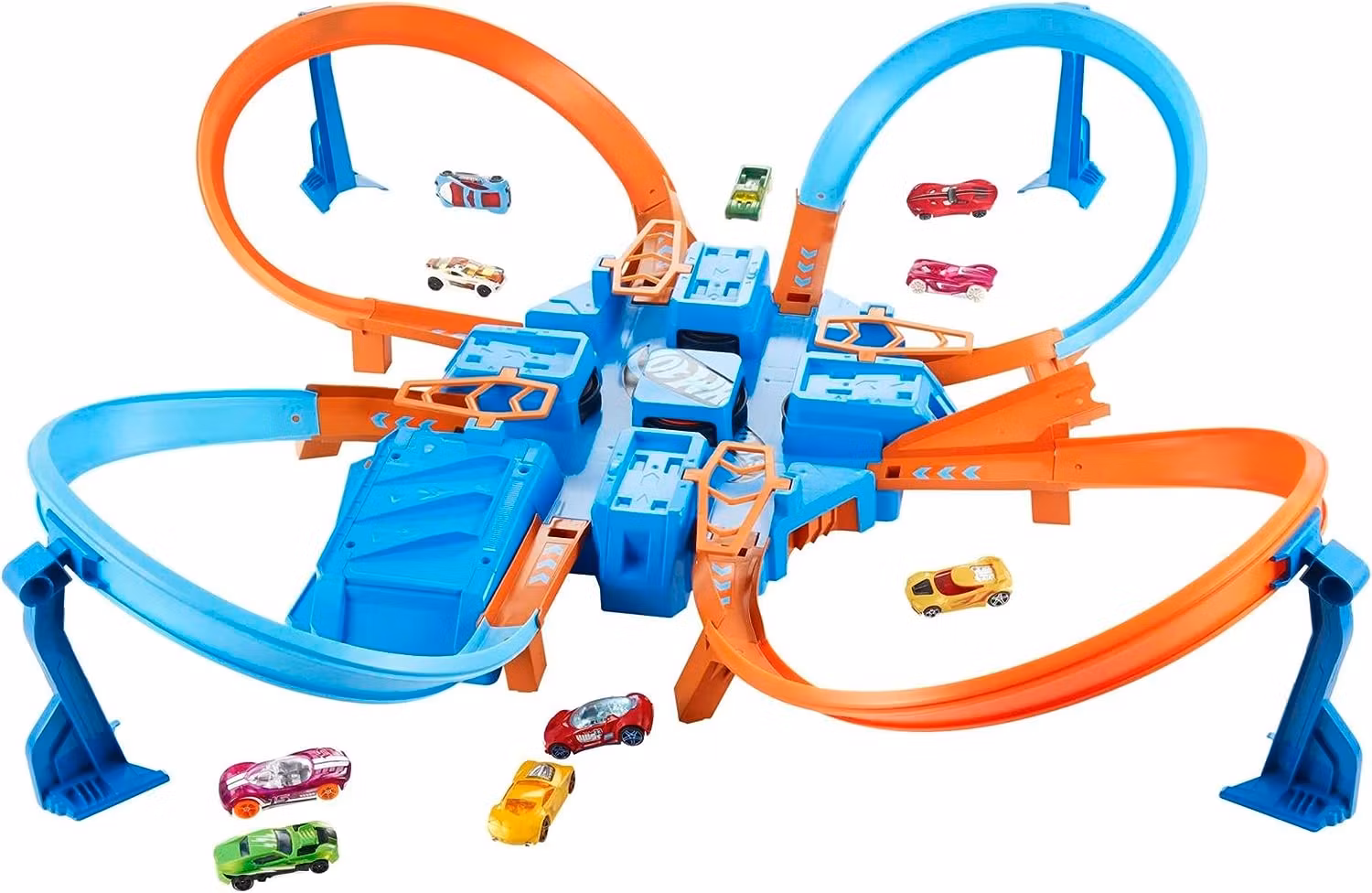 Upplev ultimat racing action med Hot Wheels , denna adrenalin pumpande bilbana från Hot Wheels erbjuder en spännande kör upplevelse med den medföljande Hot Wheels-bilen. Banan är utformad med fyra loopar och i mitten finns fyra farliga korsningar där risk för kollision ökar om flera bilar kör samtidigt.