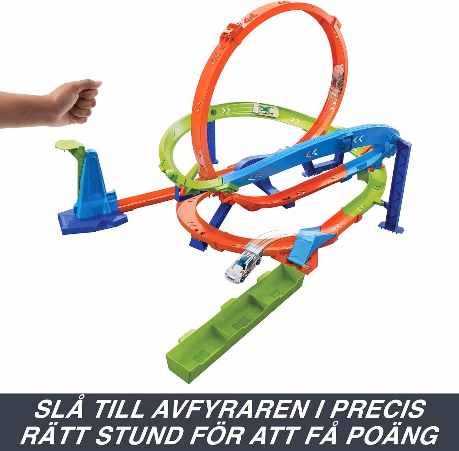 Setet erbjuder två sätt att leka: låt bilen köra i full fart genom looparna för oändlig racing, eller vänd rampen och sikta på att träffa målet med rätt kraft för att samla flest poäng. Varje försök blir en kombination av fart, precision och skicklighet!