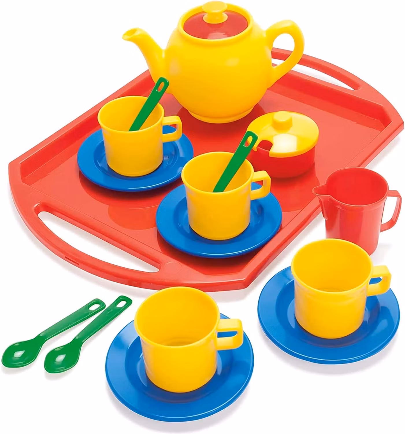 Detta set är perfekt för små värdar som vill öva på sina sociala färdigheter och låta fantasin flöda. Oavsett om det är en prinsessa-tebjudning i ett fantasifullt slott eller en hemlig klubbträff i trädhuset, är detta teservis det idealiska valet för att ta deras lek till en helt ny nivå. Med 18 delar av färgglada och hållbara te-tillbehör, erbjuder detta set timmar av rolig och fantasifull lek.