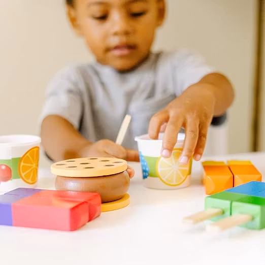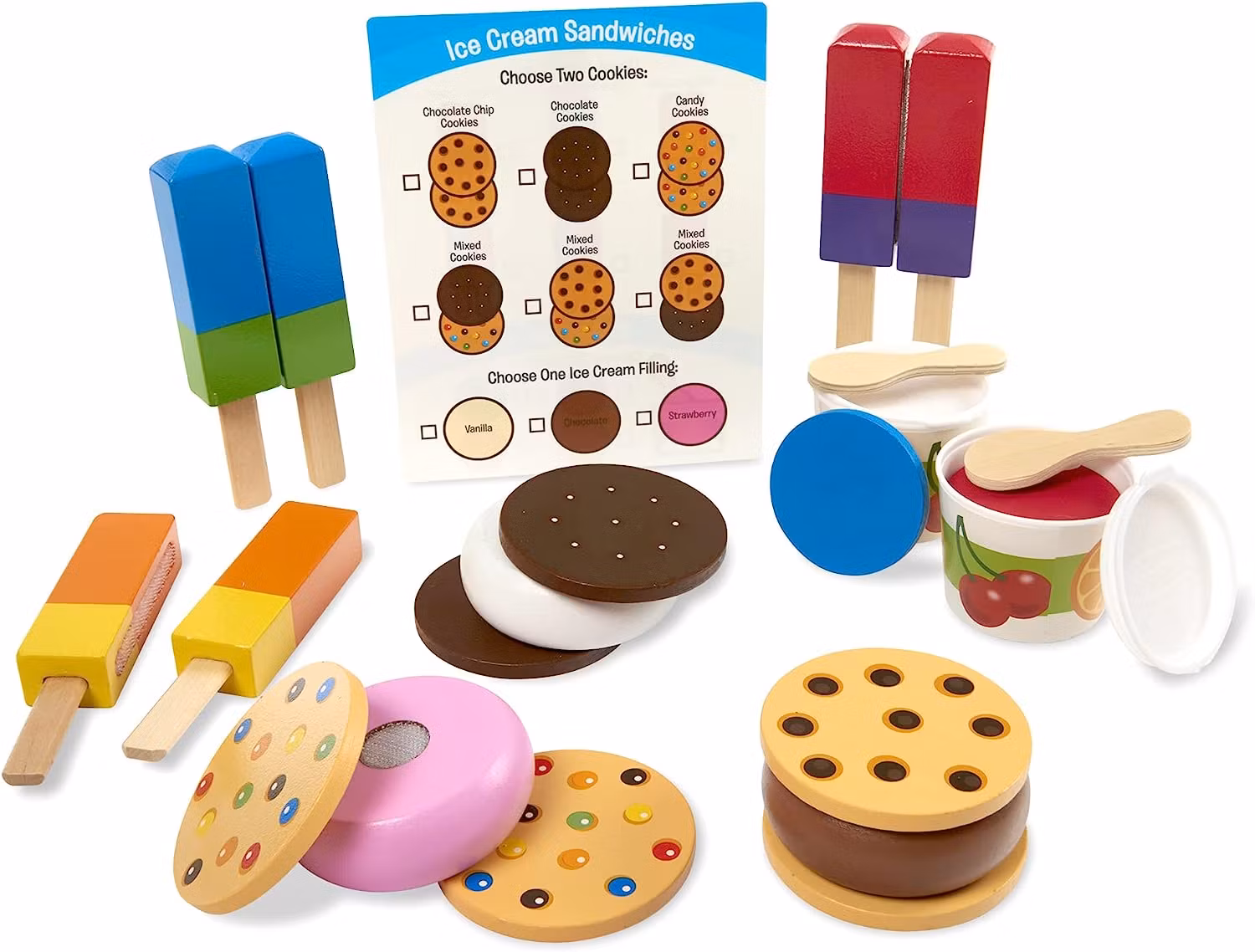 Detta 24-delade trä lekset är perfekt för alla små glass älskare. Setet innehåller en rad frysta god bitar som barnen kan kombinera och leka med. De kan experimentera med att skapa egna versioner av isglass, smörgåsar, popsicles på pinne och italienska glassbägare. Med en mängd olika ingredienser att välja mellan, ger detta set barnen friheten att utforska och skapa sina egna unika glass kombinationer.