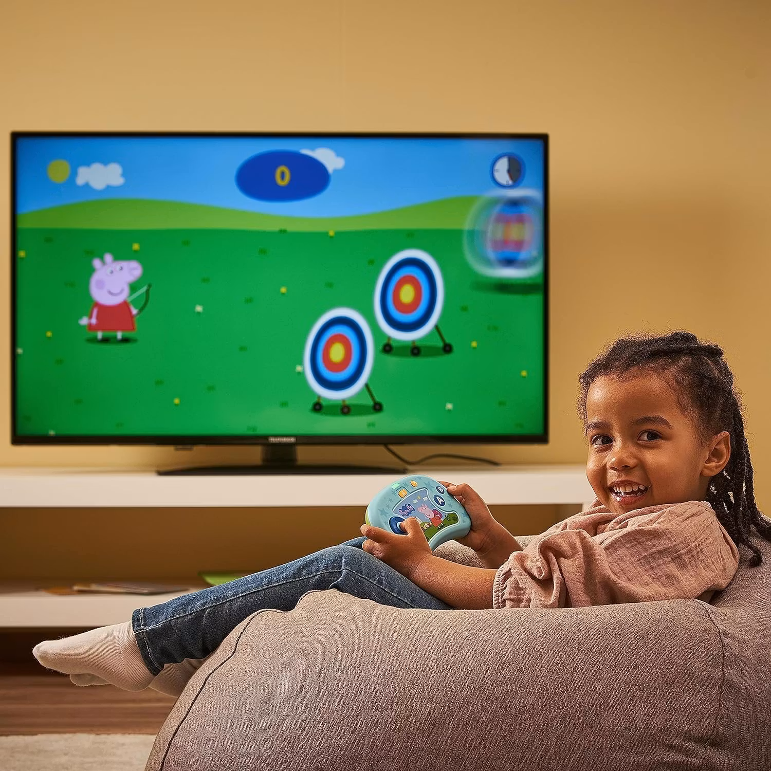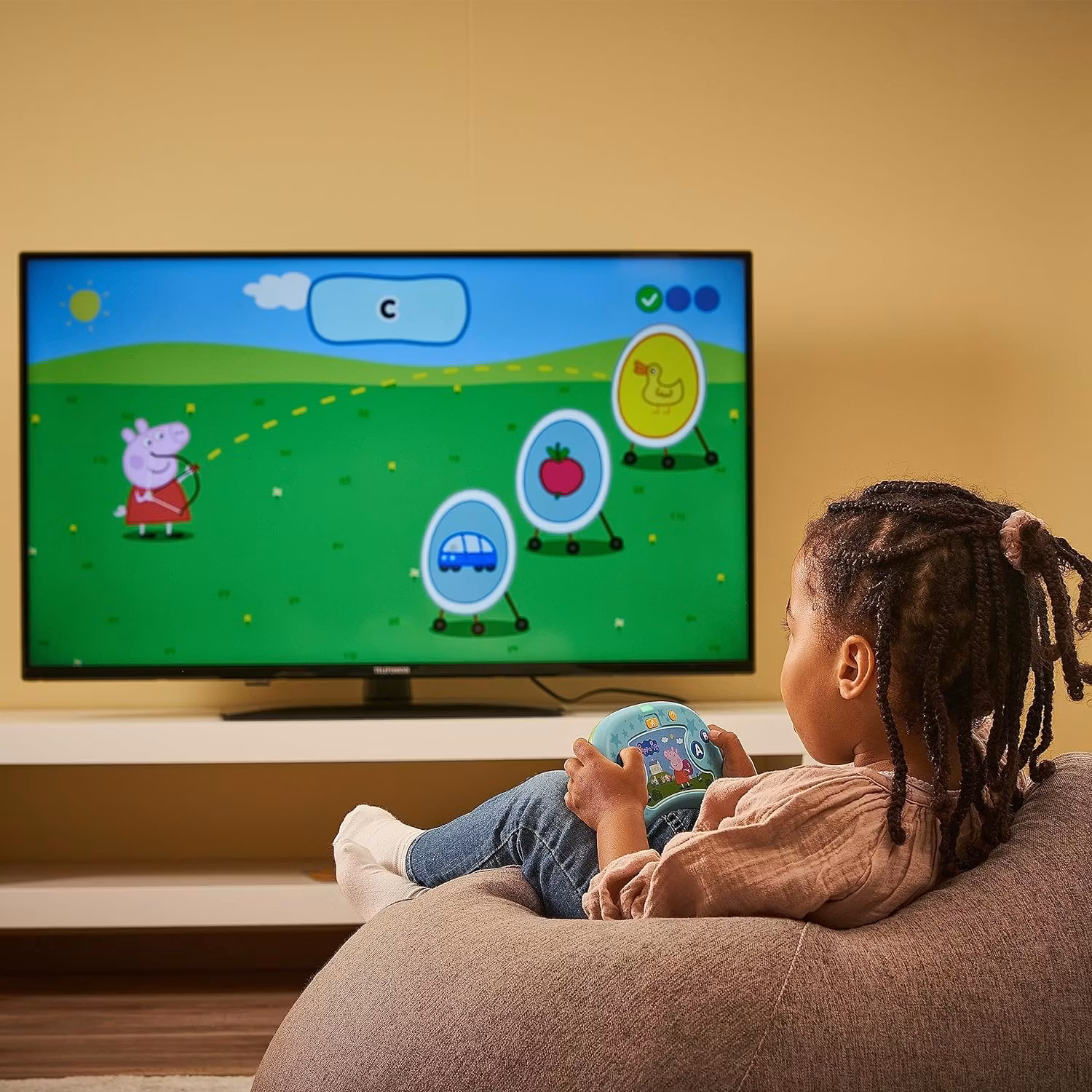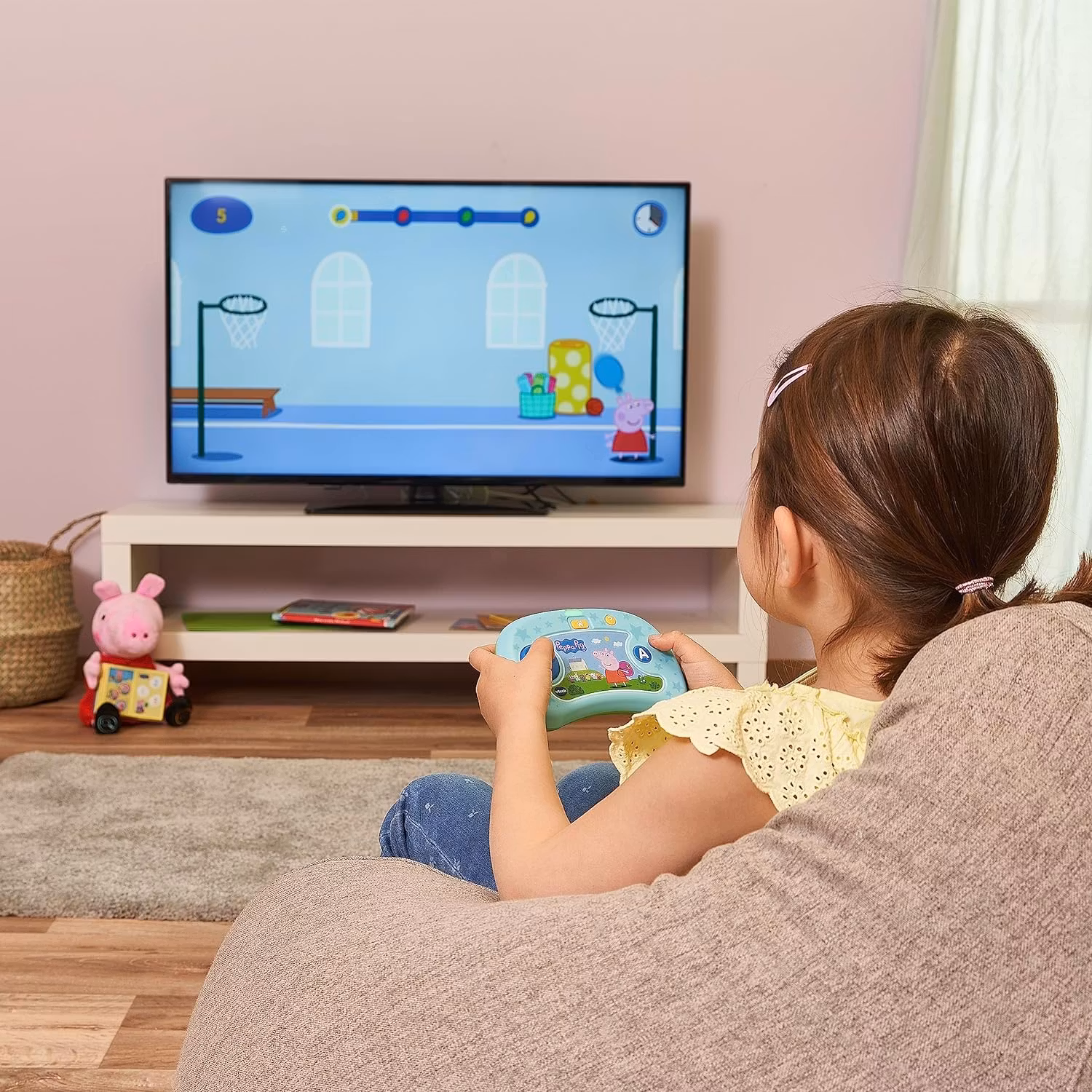 Ge ditt barn en lärorik och rolig spelupplevelse med Vtech Min Första Spelkonsol Greta Gris! Utforska fem spännande världar, inklusive en bonusvärld, och utmana 15 nivåer där barnen lär sig bokstäver, ljud, siffror, stavning, former och färger.