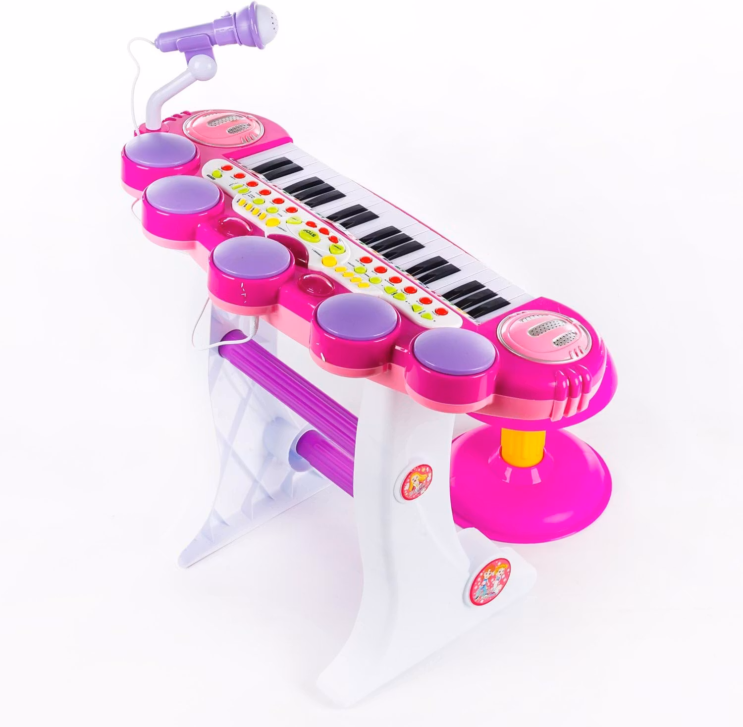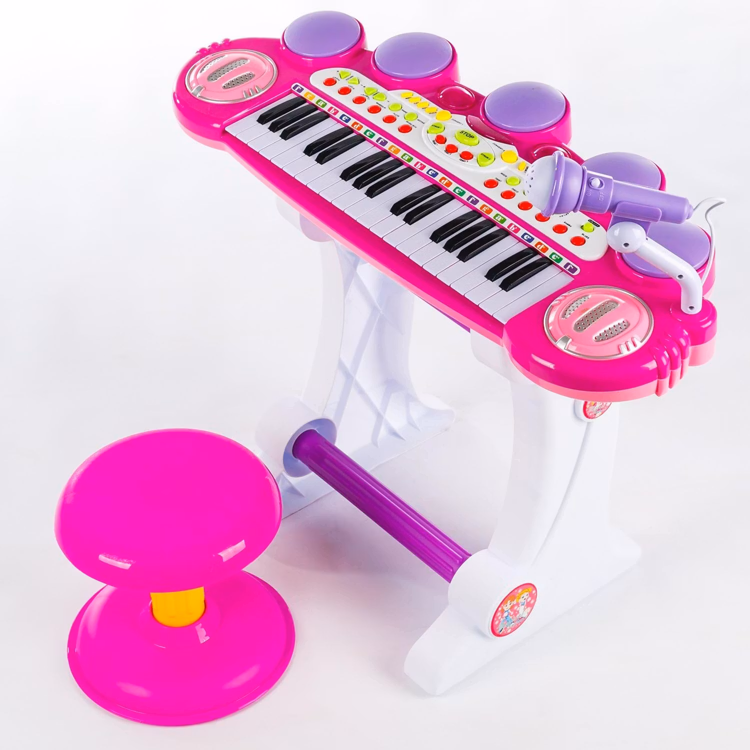 Ett fantastiskt instrument för små musikentusiaster och unga stjärnor! Det är en utmärkt leksak för barn som introduktion till musikens värld.Med 37 tangenter och många toner och rytmer ger detta keyboard barnen möjlighet att utforska olika musikstilar och rytmtyper. Det har även en mikrofon med karaokefunktion, inspelnings- och uppspelningsmöjligheter, volymregulator och en USB-kabel för att ansluta till andra enheter.
