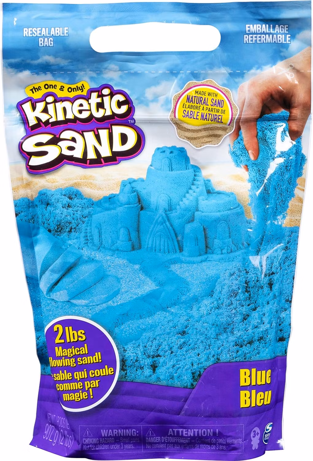 Kinetic Sand är tillverkad av naturlig sand och är fri från gluten, vete och kasein, vilket gör den säker för barn att använda. Den kommer i en praktisk återförslutningsbar påse och innehåller 900 gram Kinetic Sand.