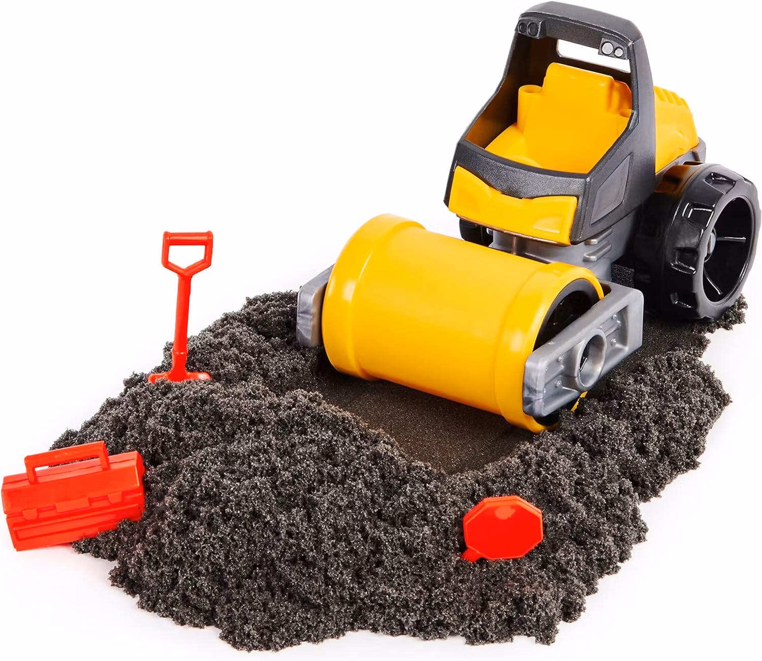 Med Kinetic Sand Pave & Play Set kan du skapa och leka med dina egna vägar och byggprojekt. Detta set innehåller 227 gram svart Kinetic Sand som liknar asfalt, ett byggfordon och tre tillbehör för att ge dig timmar av konstruktionsglädje.