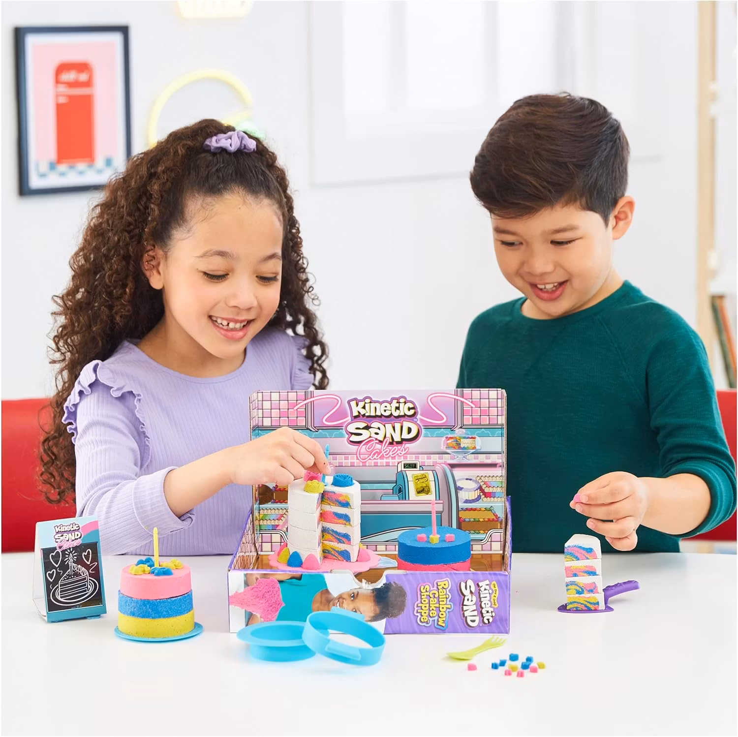 Kinetic Sands Rainbow Cake Shopper är en fantastisk leksak som låter barn utforska sin kreativitet genom bageritema lek. Med detta set kan barn skapa sina egna doftande och färgglada Kinetic Sand-kakor. Setet kommer med 680 g Kinetic Sand i olika färger som doftar vanilj. Barnen kan använda sanden för att skapa lager av läckra tårtor, blanda färger och njuta av timmar av taktil lek. Det medföljer också 10 tillbehör och köksredskap som hjälper unga konditorer att forma, skulptera och dekorera sina konditorivaror.