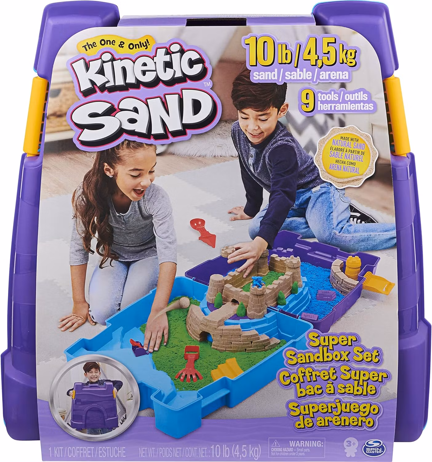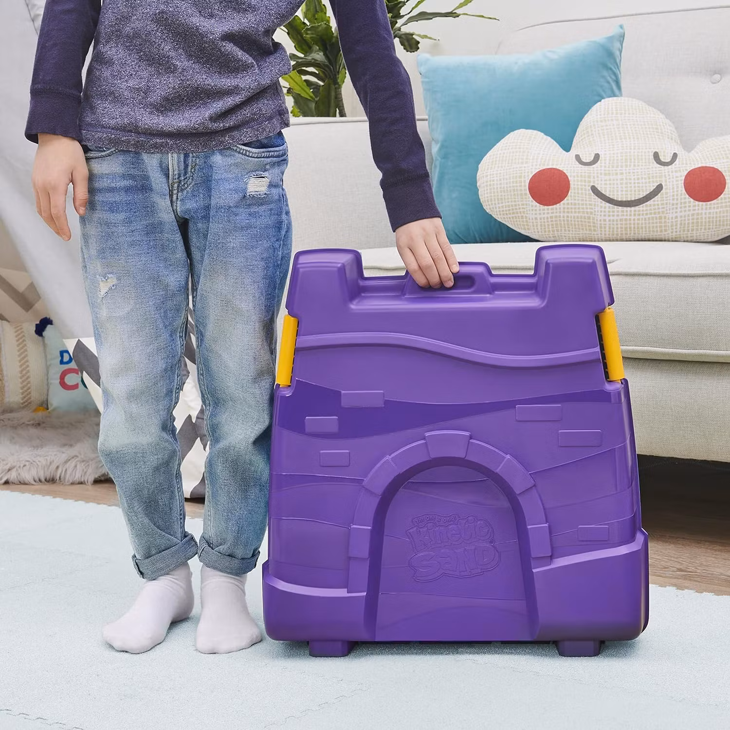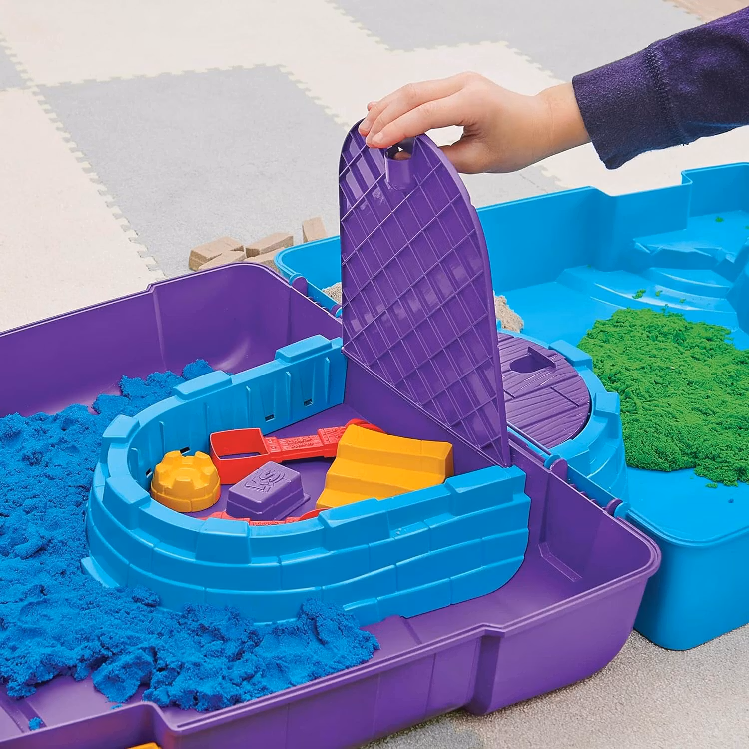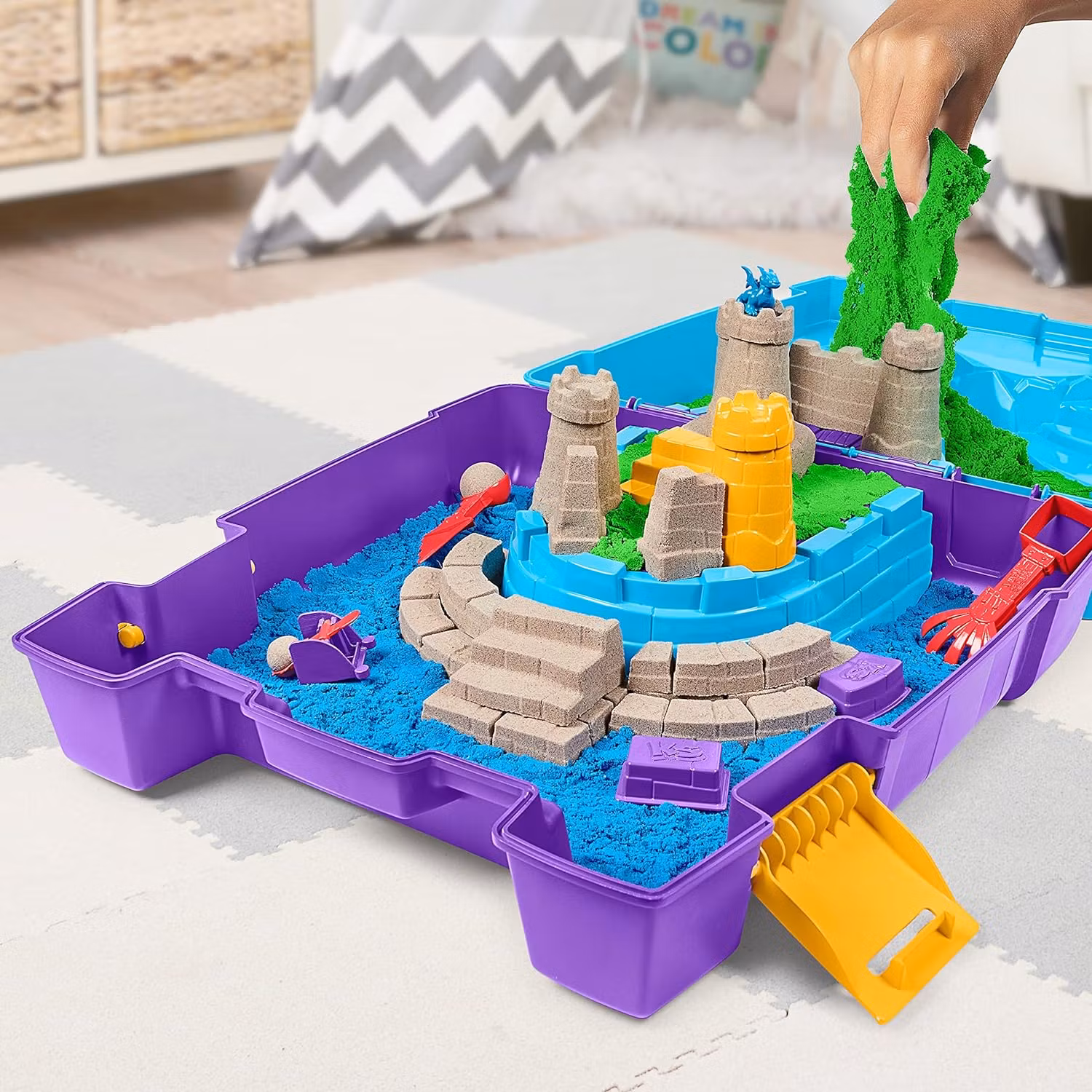 Setet inkluderar 4,5 kg Kinetic Sand i olika färger, en stor sandlåda som är 3 meter lång när den är utvikt, 10 slott-tema formar och verktyg, samt tre olika färger av Kinetic Sand (grön, blå och brun).