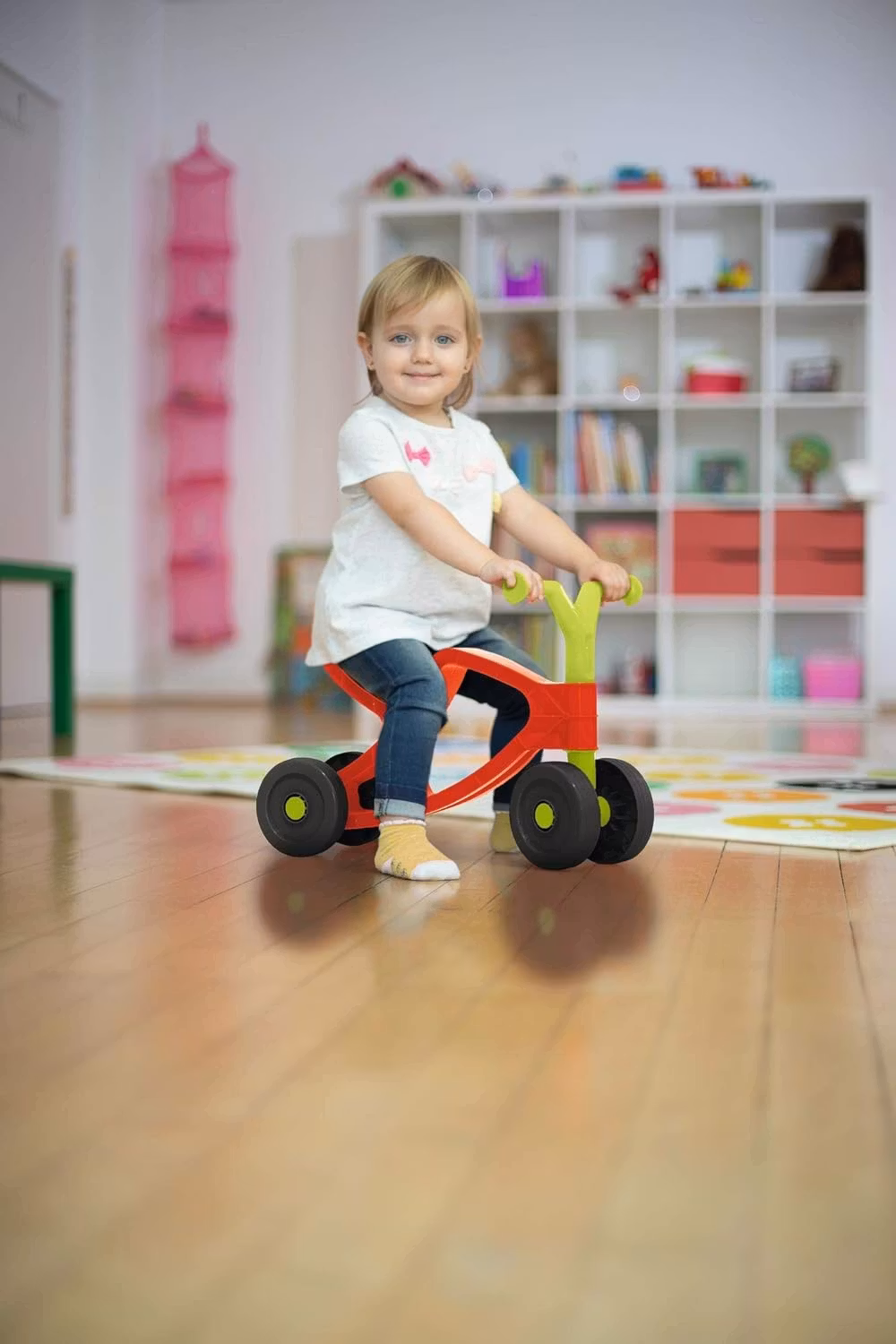 Även om detta inte är en traditionell gåbil eller pedalbil, fungerar trehjulingen på liknande sätt som en sparkdriven trampbil och stödjer barnets motoriska utveckling. Genom att styra, sparka och balansera tränas koordination, benstyrka och självständighet på ett lekfullt och naturligt sätt – vilket skapar en trygg grund för fortsatt rörelse och lärande.