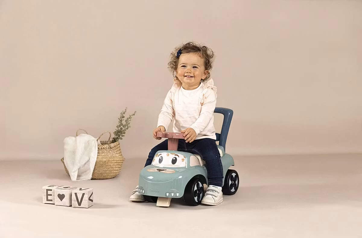 Smobys gåbil är den perfekta följeslagaren för ditt barns första äventyr. Prydd med ett gulligt djurtryck erbjuder denna gåbil inte bara roliga stunder utan även stöd vid de första stegen. Den ergonomiska och kraftiga sitsen garanterar komfort, medan den smarta designen inkluderar en leksakslåda under sitsen för att förvara små skatter.