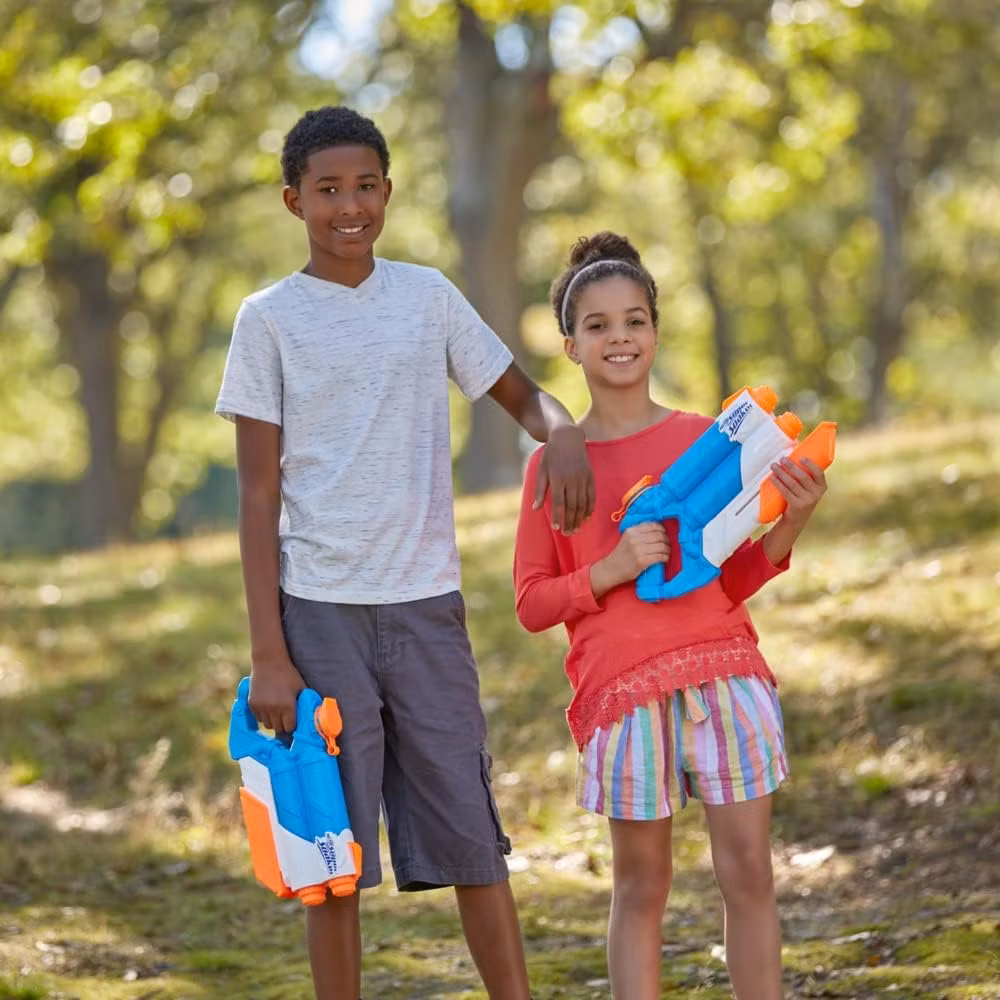 Nerf Super Soaker vattenpistol är det ultimata vapnet för blöta och actionfyllda vattenlekar! Med en kapacitet på 591 ml kan du enkelt fylla tanken och vara redo för spännande vattenstrider. Pumpa för en kraftfull stråle eller öppna munstycket för en överraskande vattenvåg – perfekt för att överraska dina motståndare! Den lätta och ergonomiska designen gör vattenpistolen enkel att hantera för både barn och vuxna.