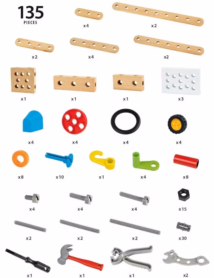 BRIO Builder byggsats 34587 är en kreativ och lärorik byggupplevelse för barn. Med komponenter i plast och trä, skruvar, muttrar och verktyg kan barnen bygga och ombygga olika strukturer. Setet främjar problemlösning, finmotorik och teknisk förståelse. Verktygen är designade för att passa små händer, vilket gör det enkelt för barn att skapa sina egna modeller.