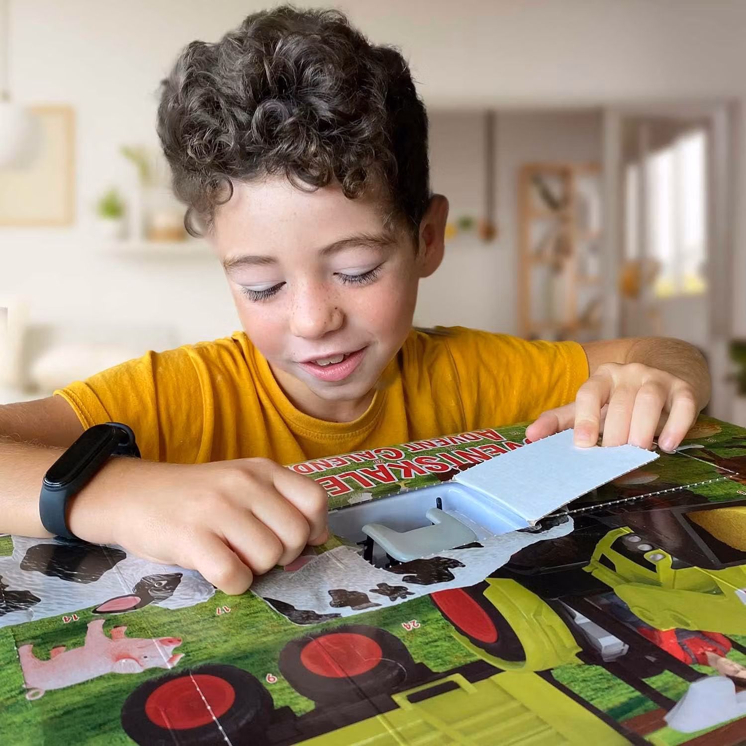 För små djurälskare och kreativa byggare är denna adventskalender för barn ett perfekt sätt att låta en egen bondgård växa fram dag för dag. Kalendern innehåller 24 överraskningar som tillsammans skapar en charmig gårdsmiljö komplett med traktor, släp och en mängd olika figurer.