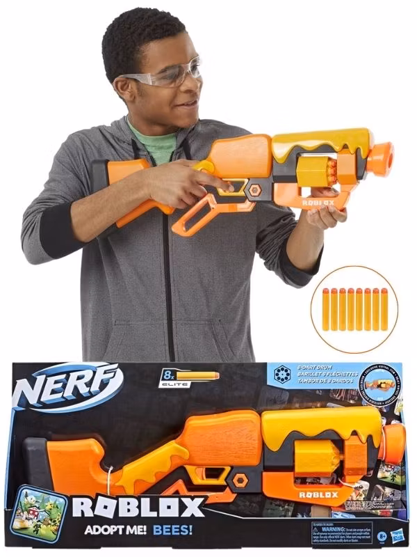 NERF Roblox Adopt Me Bees är en leksaksblaster inspirerad av det populära Roblox-spelet Adopt Me, och erbjuder barn en trygg och spännande lek med både digital och fysisk koppling. Med sin lekfulla design och roterande cylinder som rymmer upp till 8 skumkulor, passar den perfekt för barn i åldern 6–10 år som gillar kreativ rörelselek.