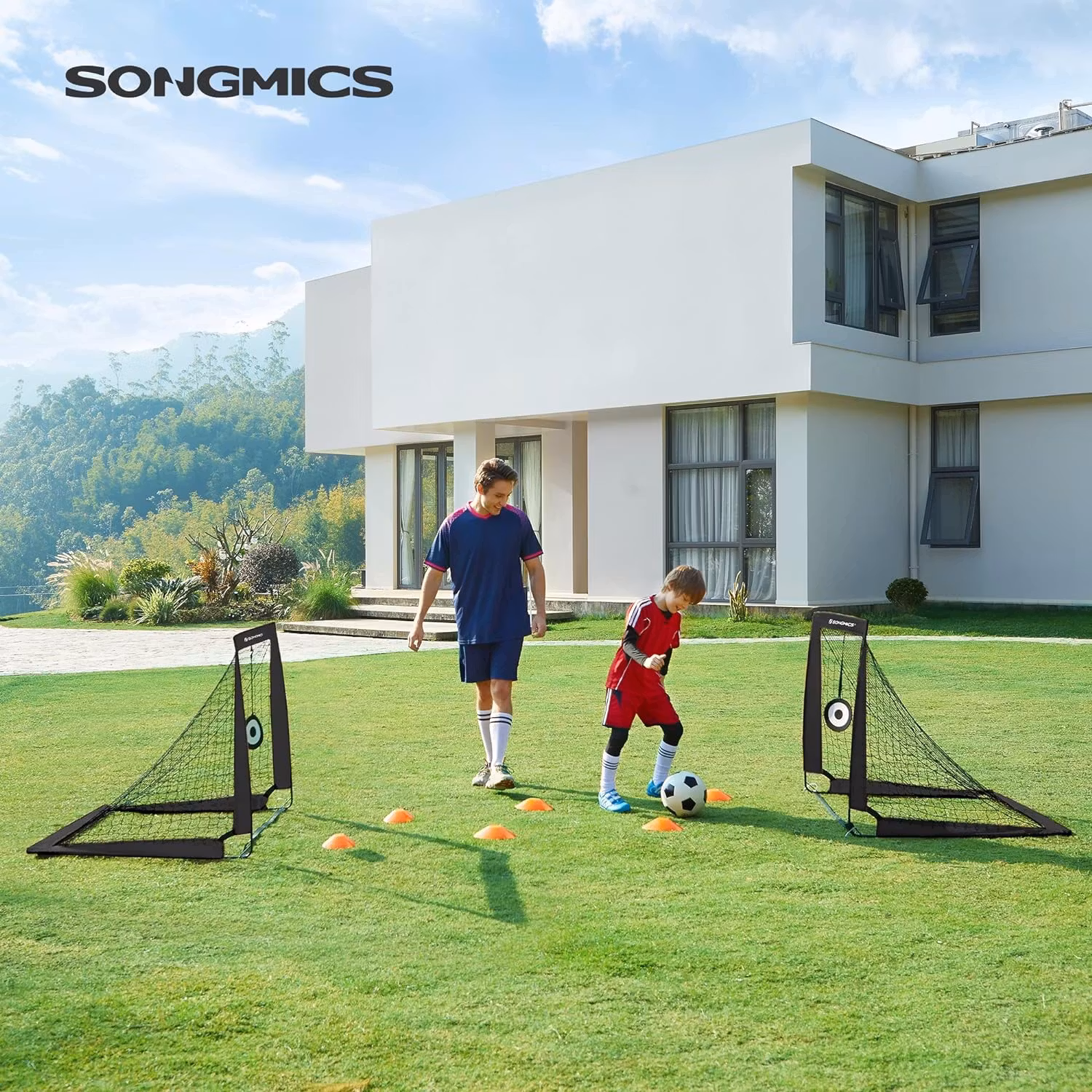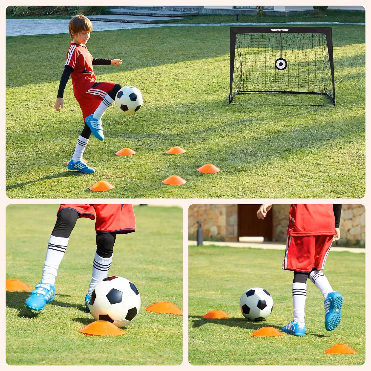 Songmics Fotbollsmål 2-Pack erbjuder den perfekta plattformen för att skärpa fotbollsfärdigheter. Med glasfiberstavar och J-formade markankare för extra stabilitet, är dessa mål idealiska för intensiv träning. Setet inkluderar en målskiva för att förbättra träffsäkerheten och koner för dribblingsträning, vilket gör det till ett komplett träningsverktyg för aspirerande fotbollsspelare.