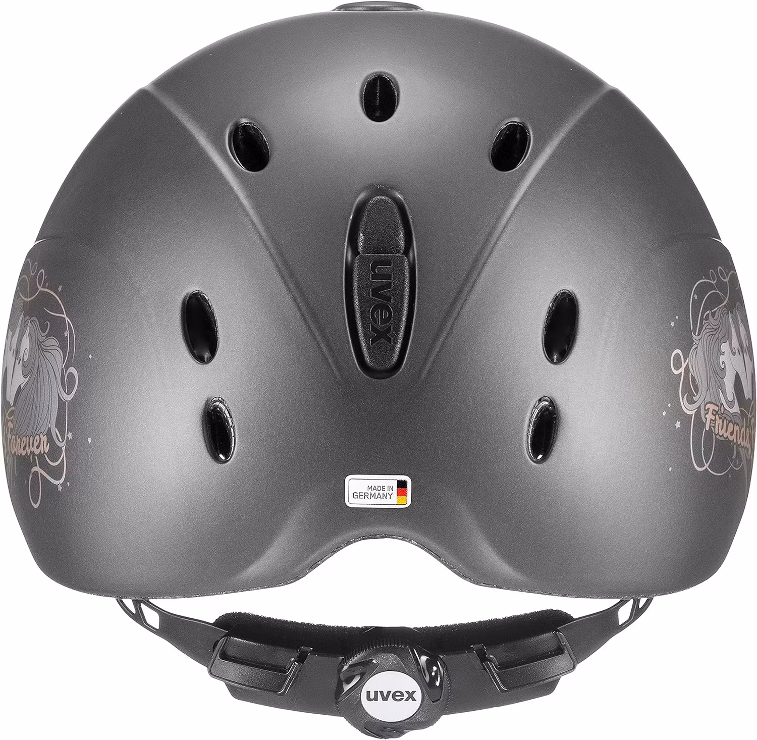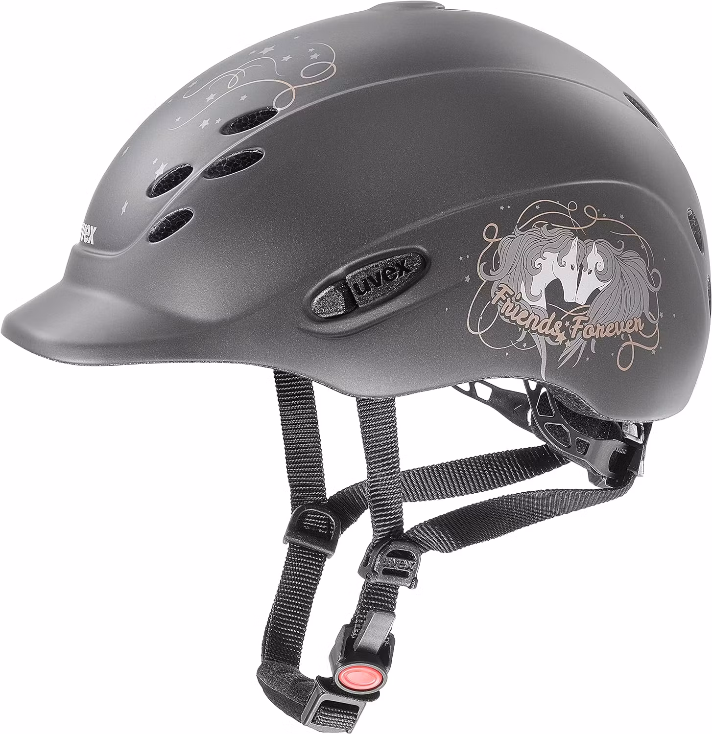 Uvex Onyxx kombinerar lätt konstruktion med maximal slagtålighet för unga ryttare, tack vare en högteknologisk sammanfogning av EPS-innerskal och ett polykarbonat ytterskal. Med det justerbara uvex 3D IAS-systemet, inklusive höjdjustering, erbjuder hjälmen optimal anpassning till barnets huvudform och -omkrets. FAS-remsystemet garanterar en exakt passform, medan Monomatic-spännet möjliggör enkel enhandsöppning.
